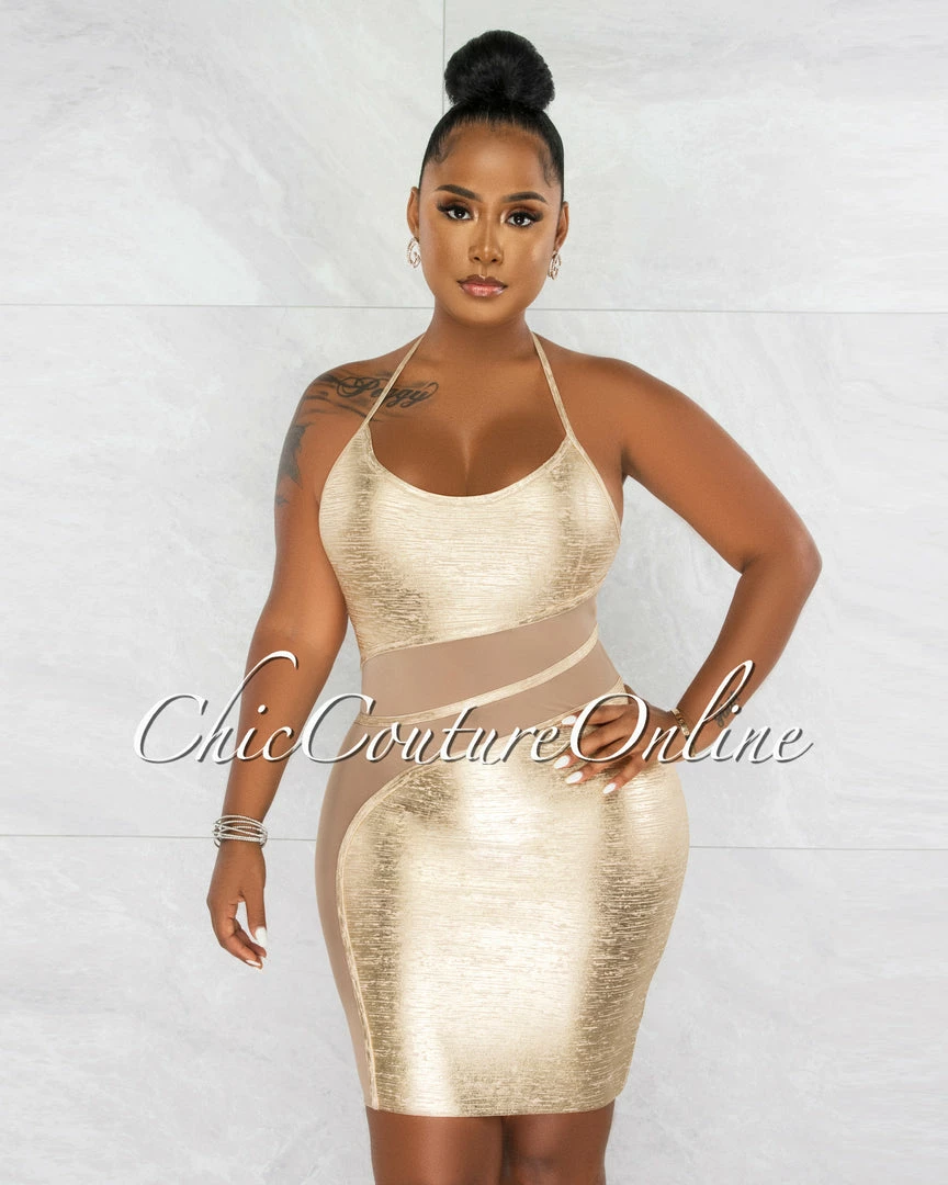 Chic Couture Online Carmela Gold Foil Mesh Details Bandage Dress