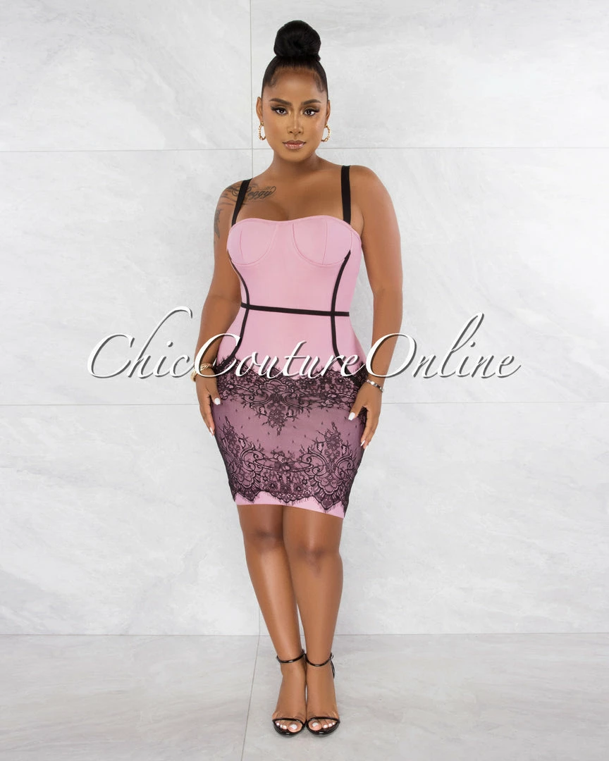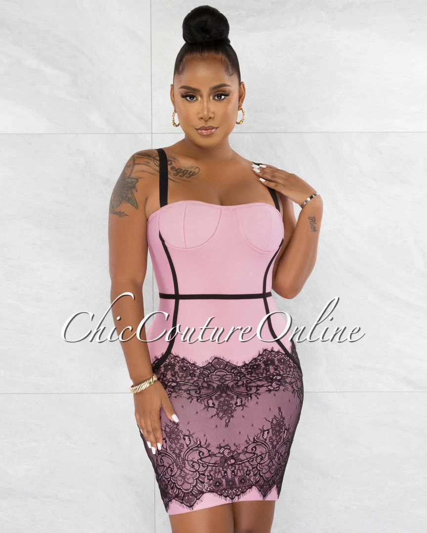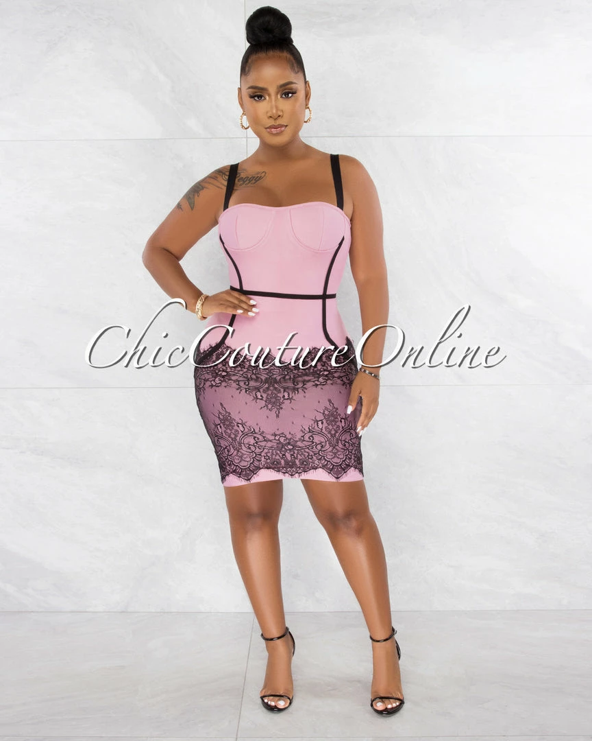 Chic Couture Online Earvin Pink Black Trim Lace Hem Bandage Dress