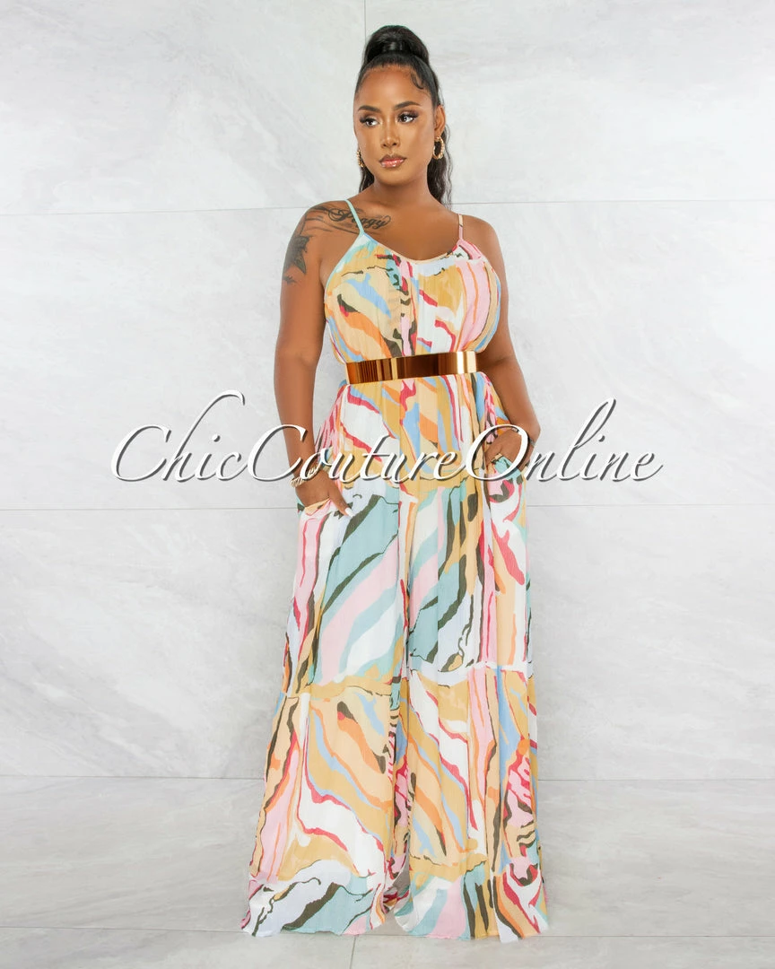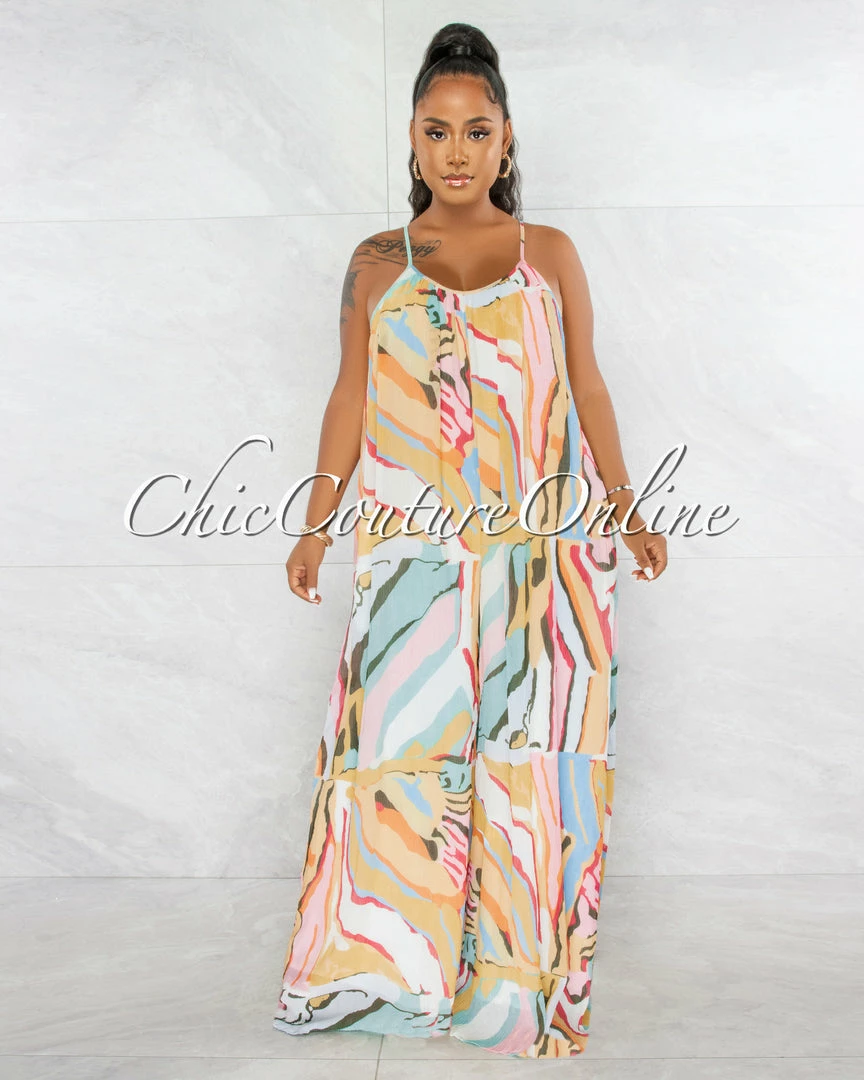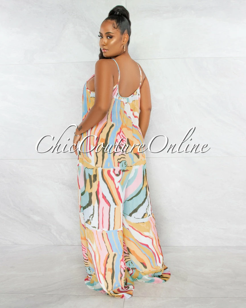 Bedecked in luxe print, this wide jumpsuit puts a spin on this playful one-and-done design.