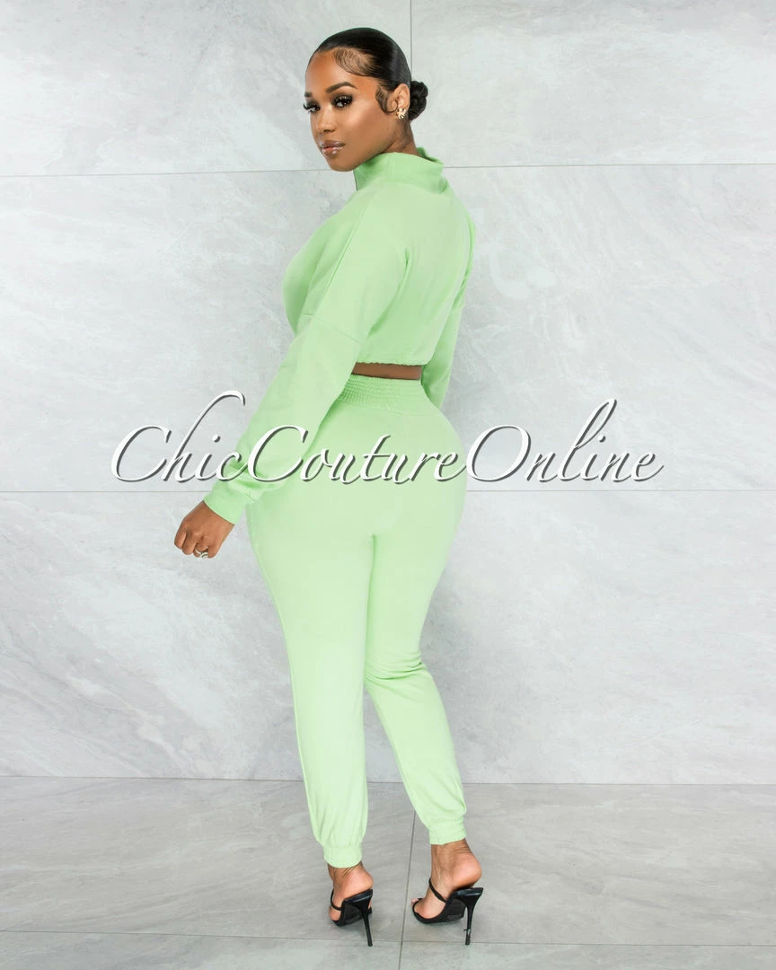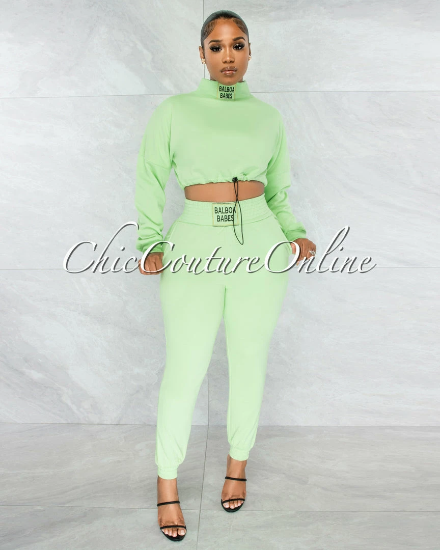 Chic Couture Online JUST IN Balboa Baby Green Crop Sweater & Jogger Two Piece Set