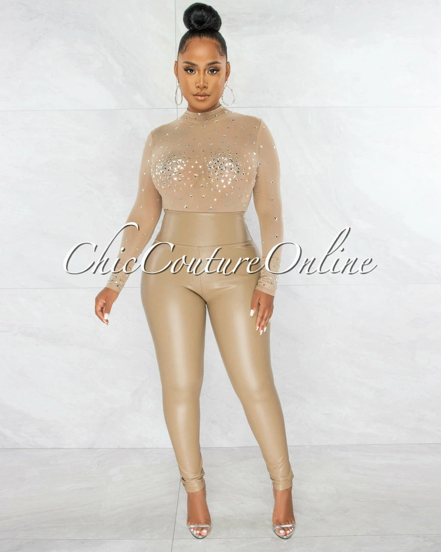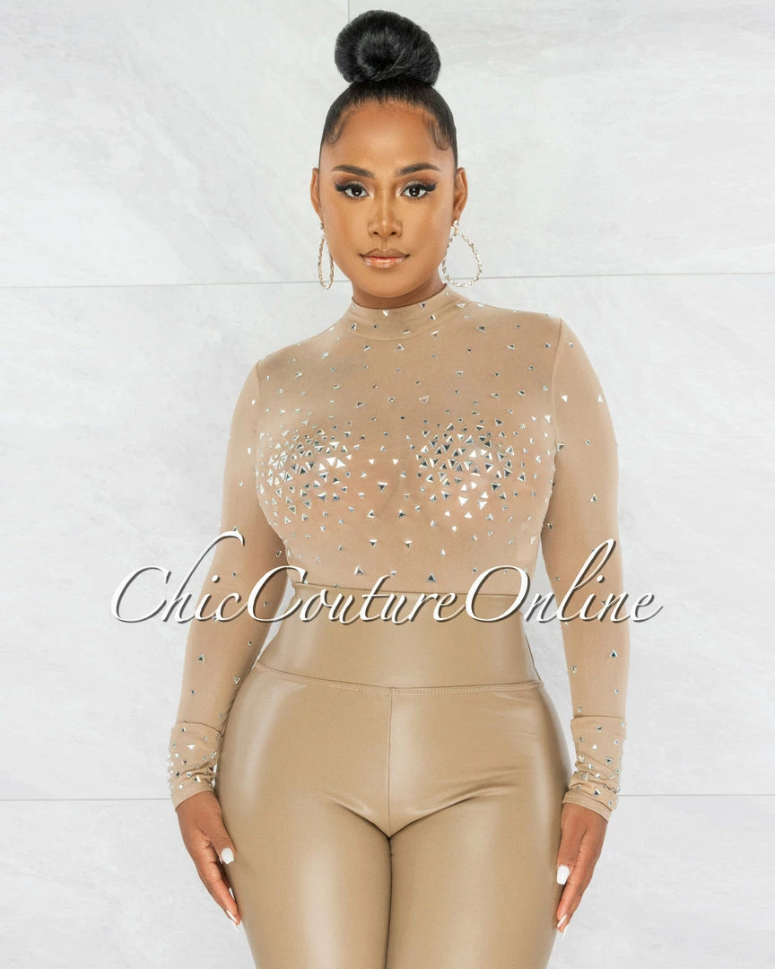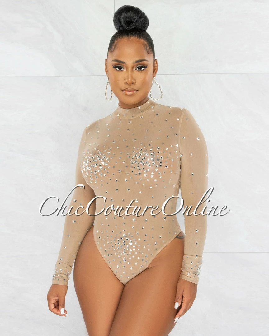 Chic Couture Online JUST IN Moore Nude Silver Mesh Rhinestones Bodysuit