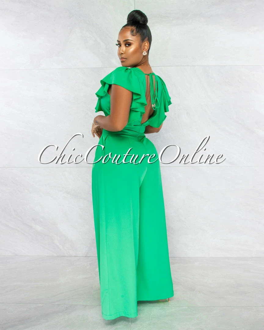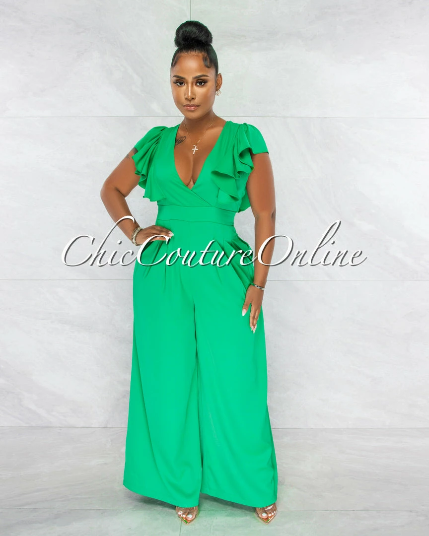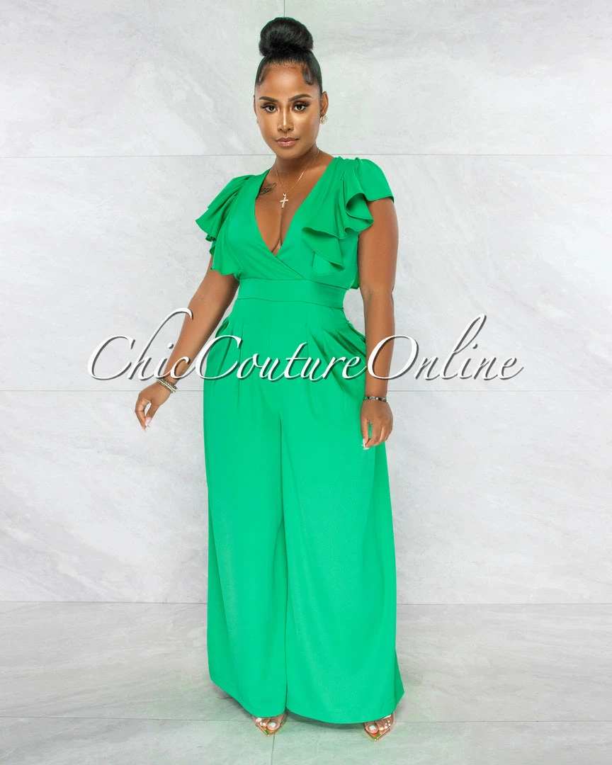 A classic jumpsuit with a ruffle hint