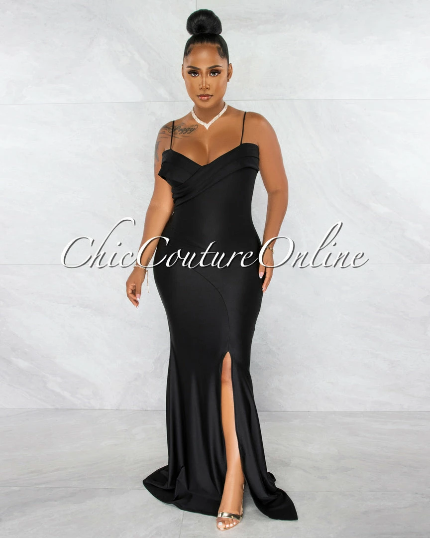 Chic Couture Online Klaus Black Off-The Shoulders Side Slit Maxi Dress JUST IN