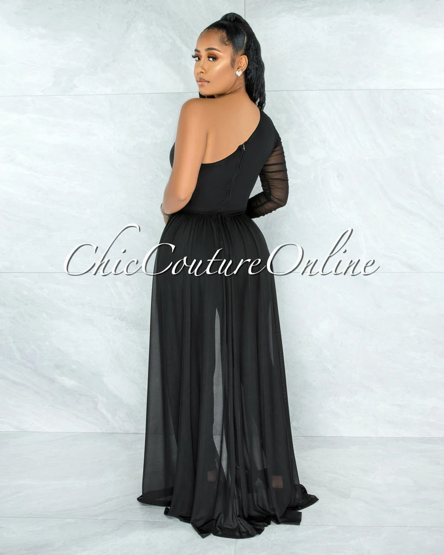 - Ruched Mesh Long Single SLeeve