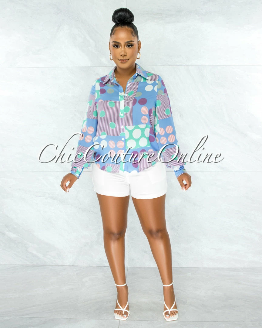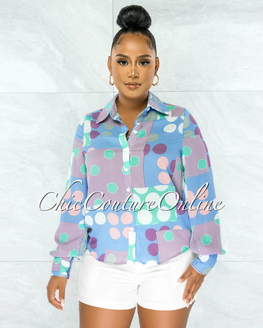 Upgrade your “desk to dinner” wardrobe when you add this colorful polka dots print to it!