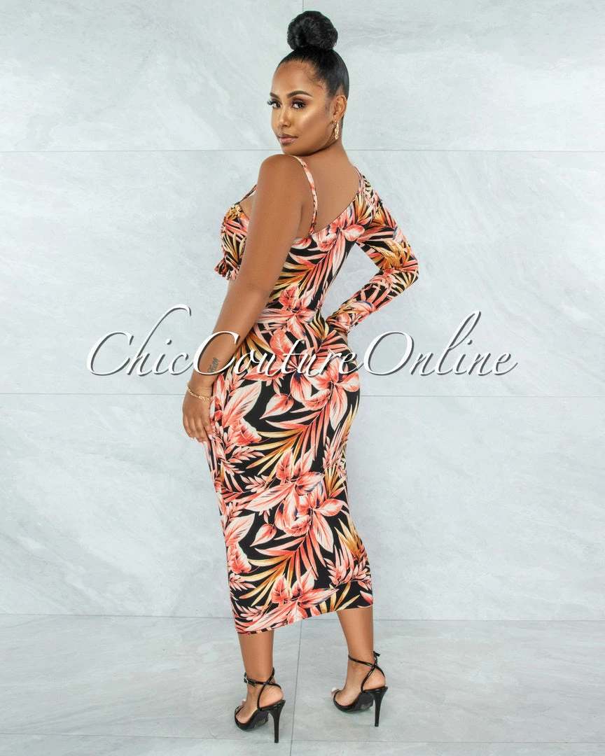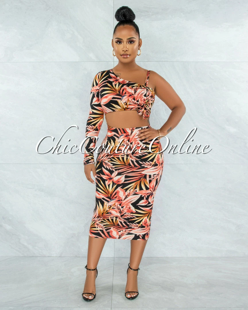 Getaway glamour! This streamlined silhouette bursts into bloom with a sexy cut-out that makes an entrance.
