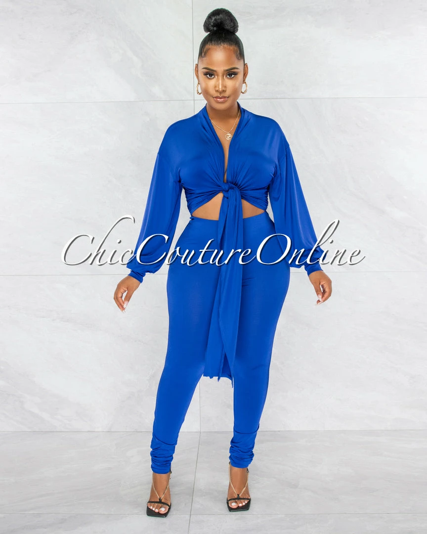 Chic Couture Online Sophia Royal Blue Front Tie Top & Leggings Set