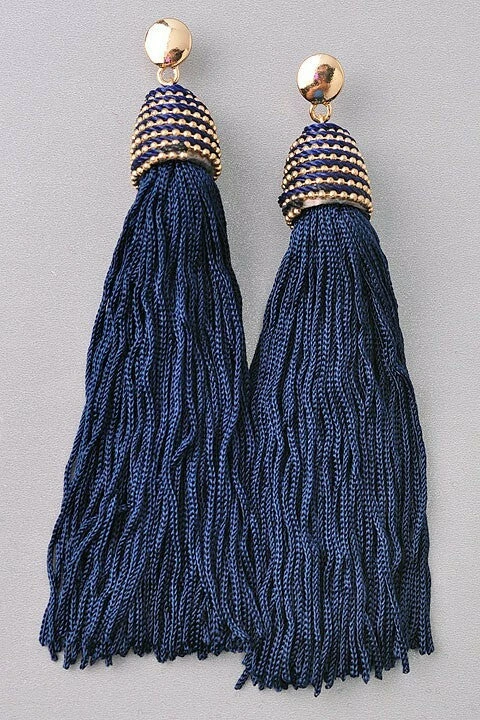 Vendor-unknown ACCESSORIES Morah Navy Long Tassel Earrings