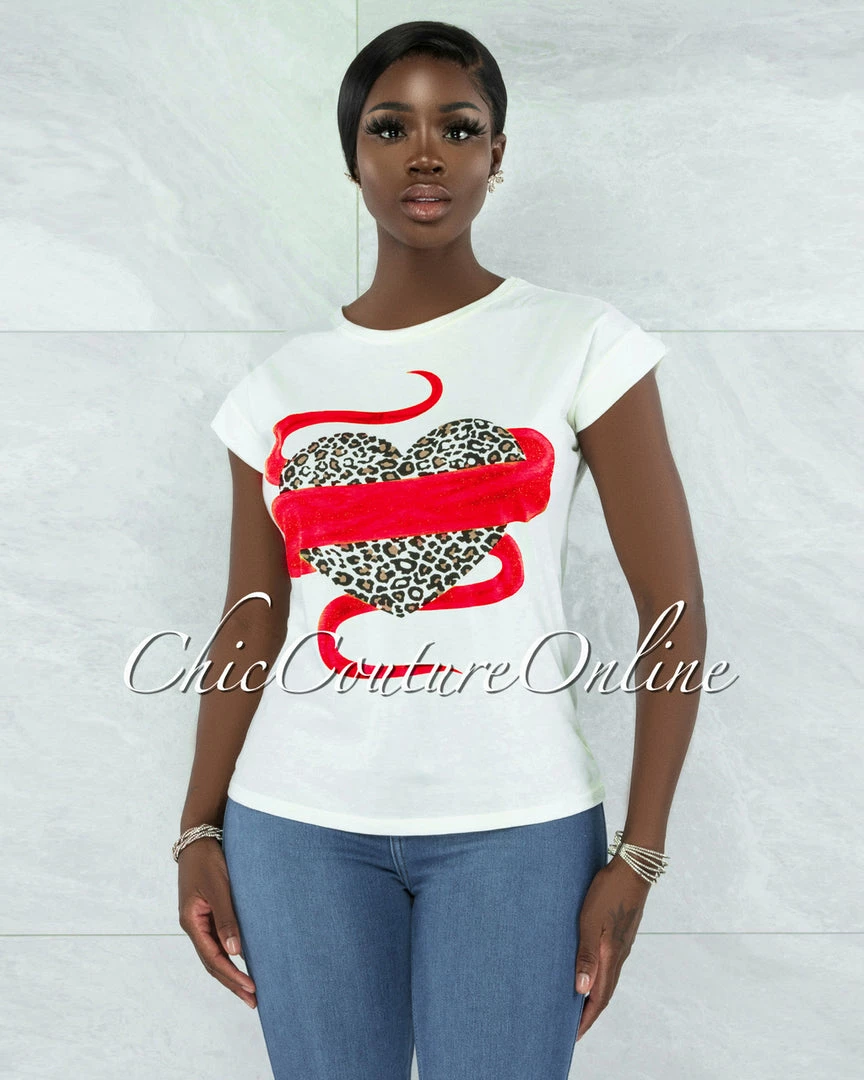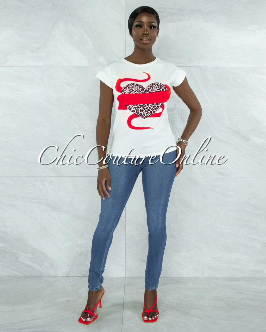 Vendor-unknown Alcantara Off-White Red Leopard Front Graphic T-Shirt JUST IN