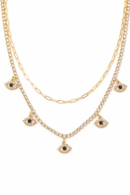 Vendor-unknown Alexandra Gold Evil Eye Pave Charm Station Necklace