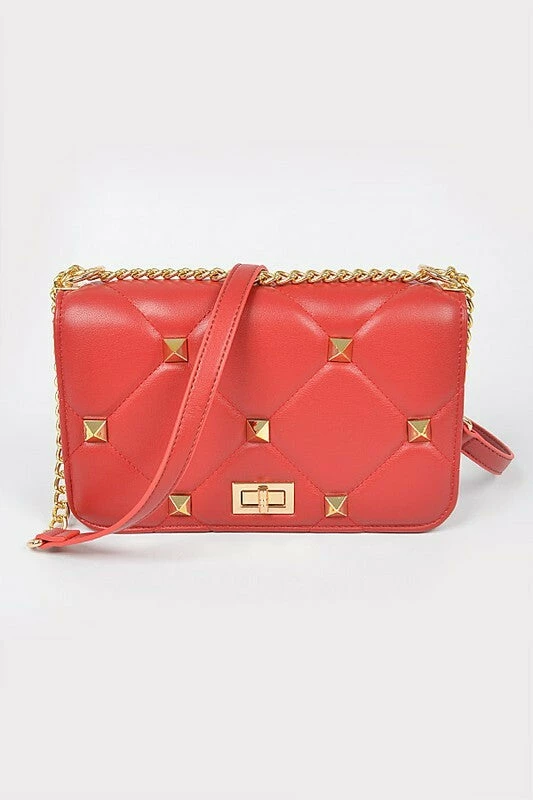 Vendor-unknown Andra Red Quilted Flap Crossbody Bag W/ Oversized Studs