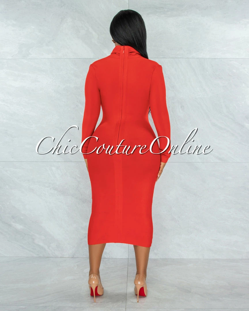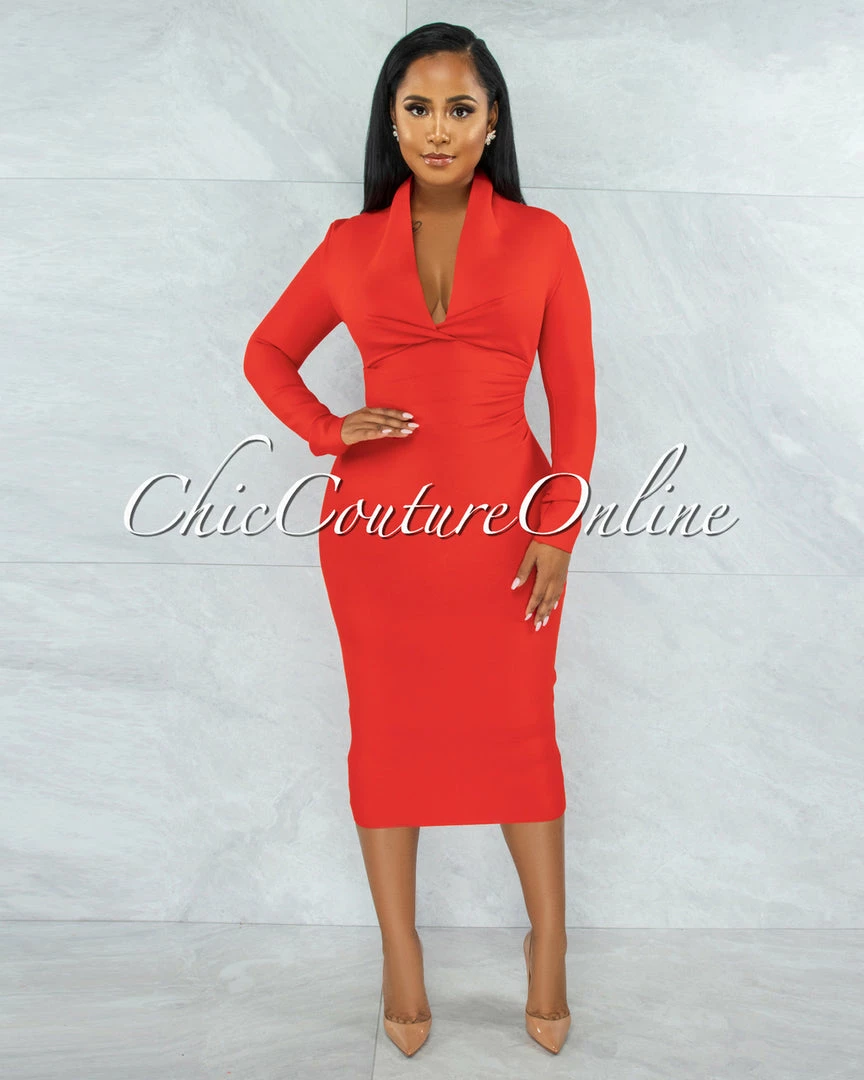 Vendor-unknown Athina Red Draped Details Bandage Midi Dress