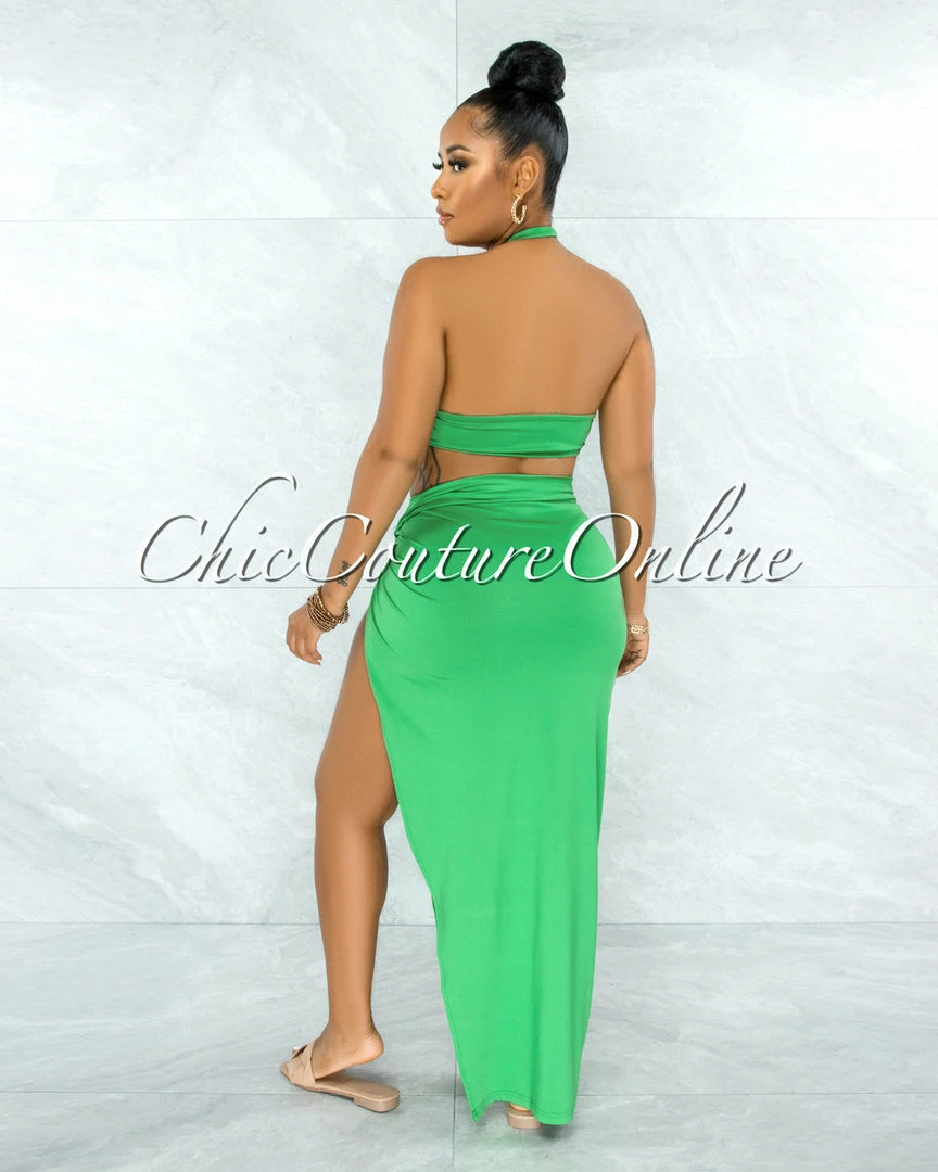 Vendor-unknown Cafice Kelly Green O-Ring Halter Swimsuit & Maxi Skirt Set JUST IN