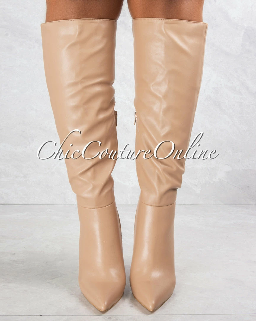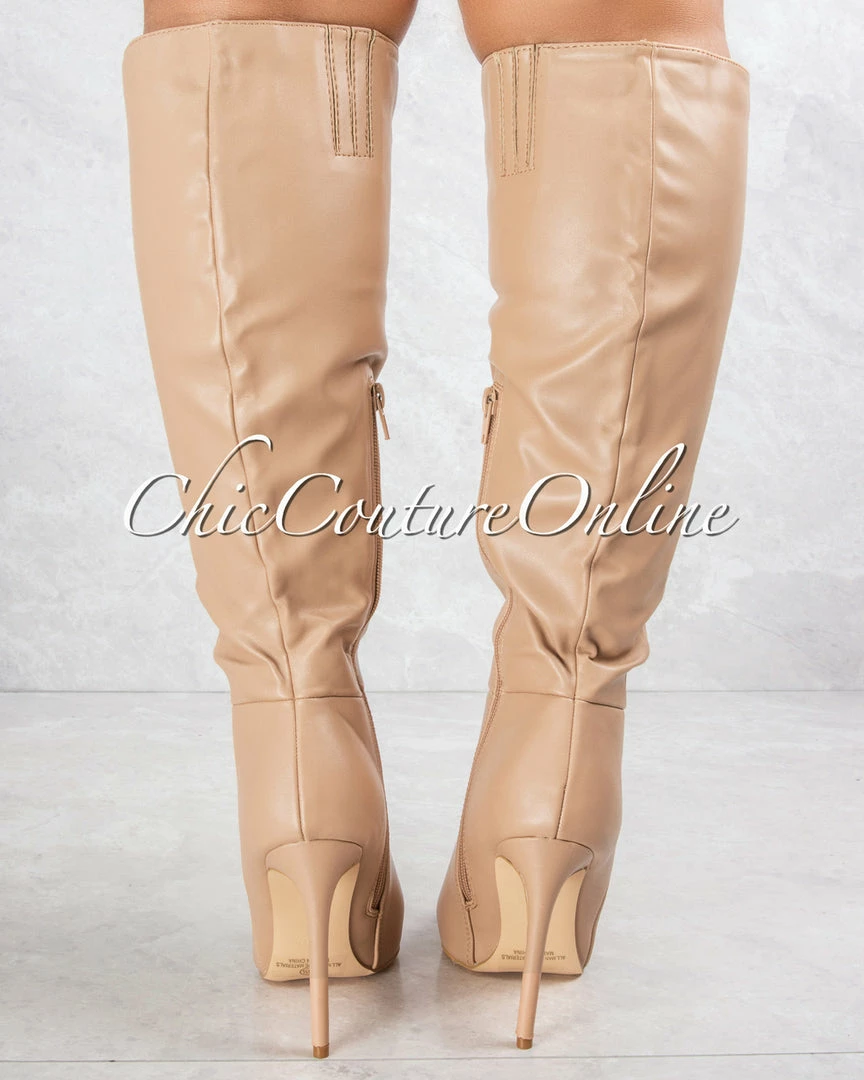 Vendor-unknown Casanova Camel Faux Leather High Boots JUST IN