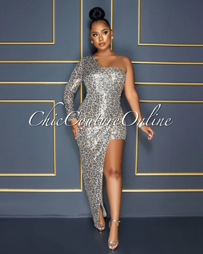Covered in shimmering sequins, this stunning iteration of the party dress steps out with high shine sequins so glamorous, it’s destined for a double take.