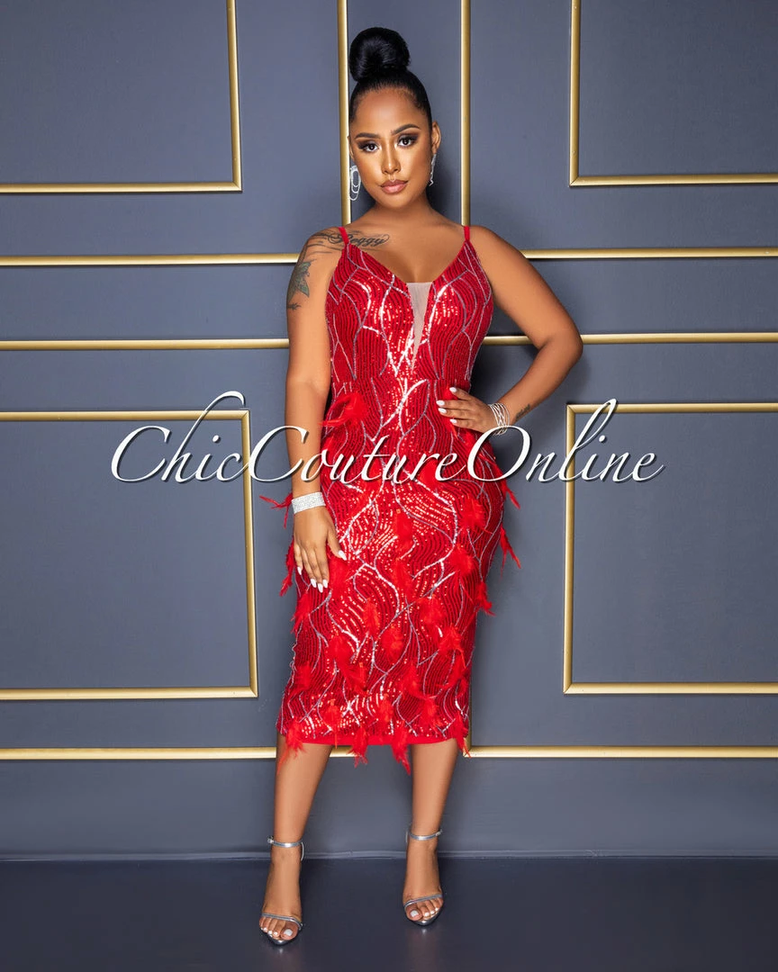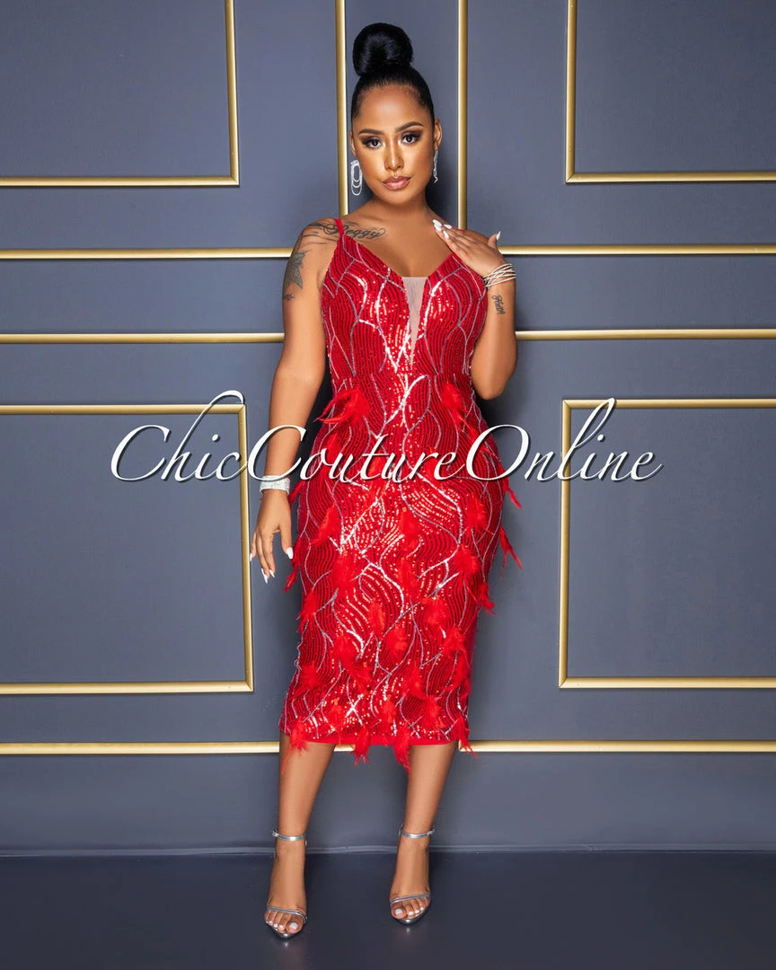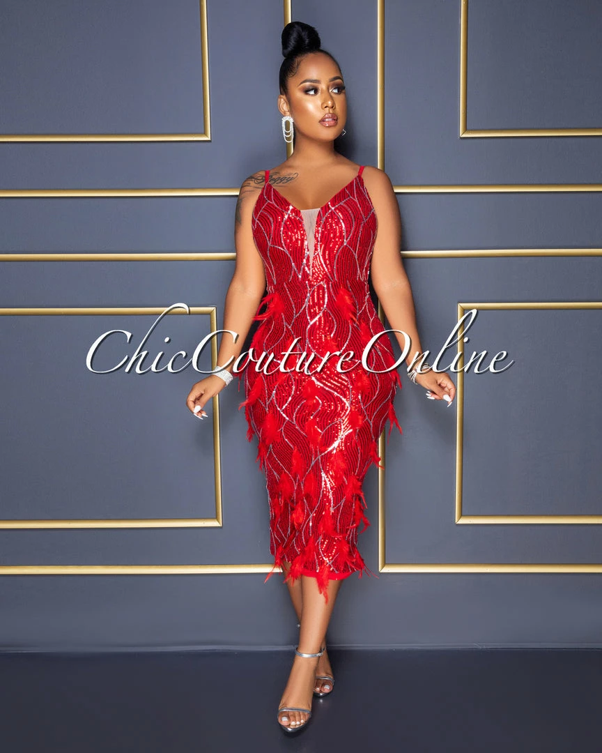 Sweet and elegant, this sequins and feathers dress reigns as the queen dazzle.