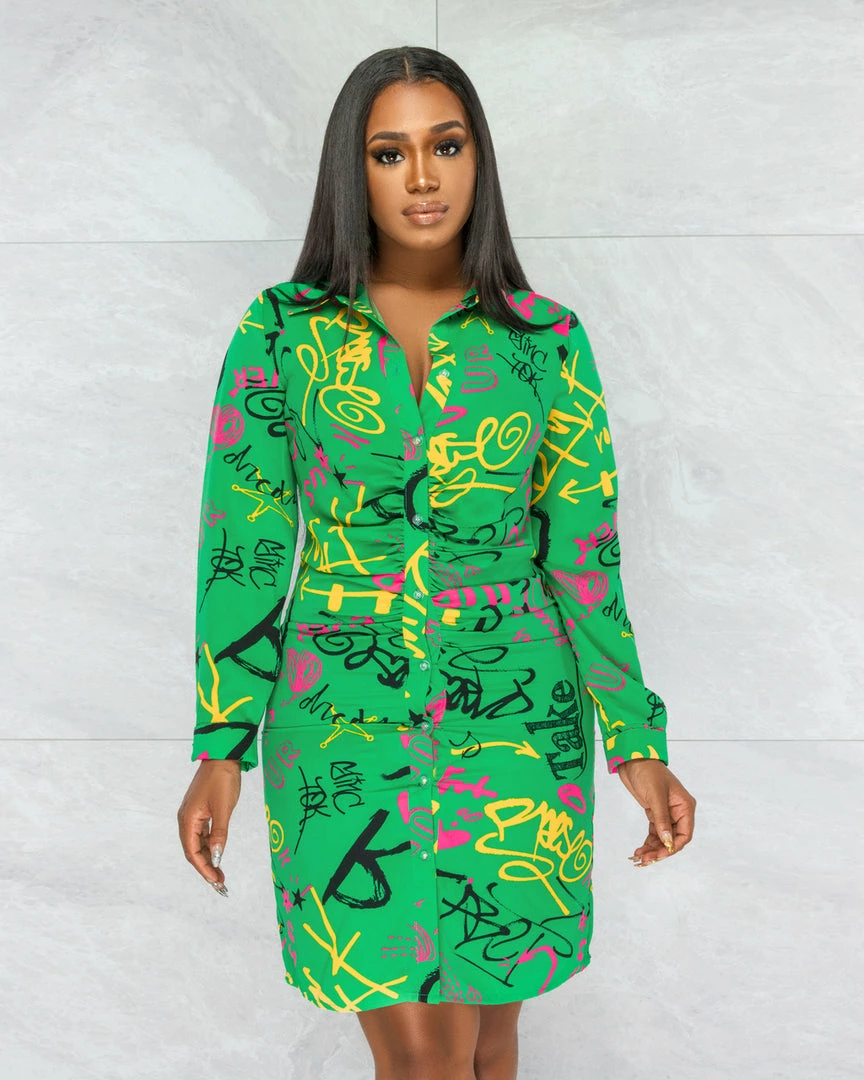 Easy, breezy and fluid define this effortless and slimming shirt dress.