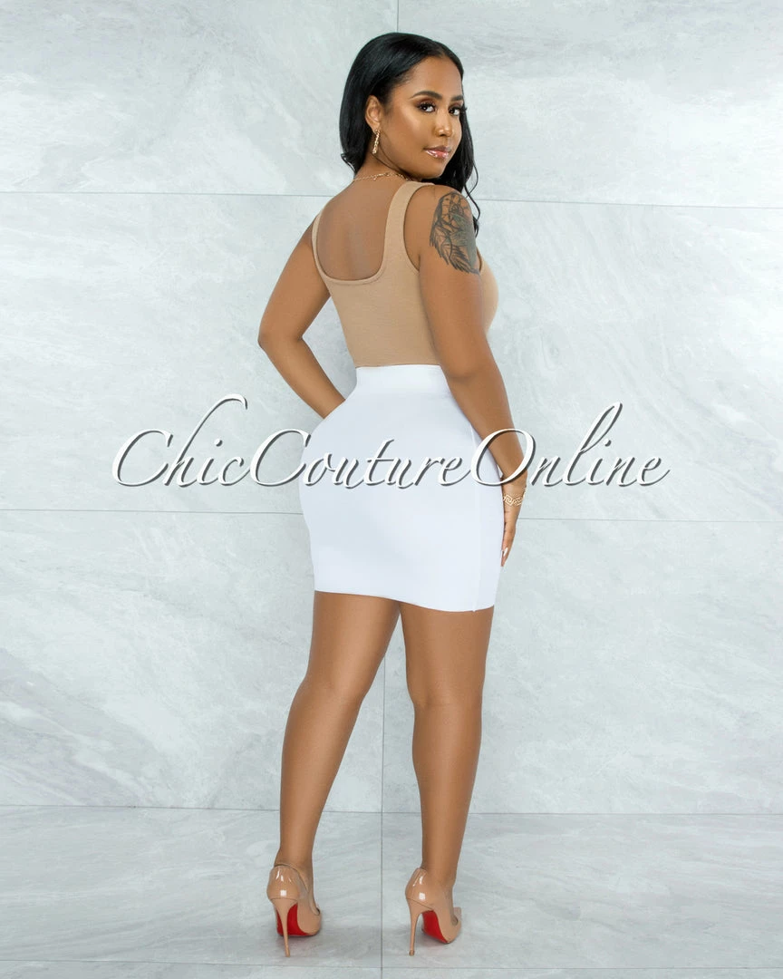 Vendor-unknown Darence White Body-Con Bandage Mini Skirt JUST IN