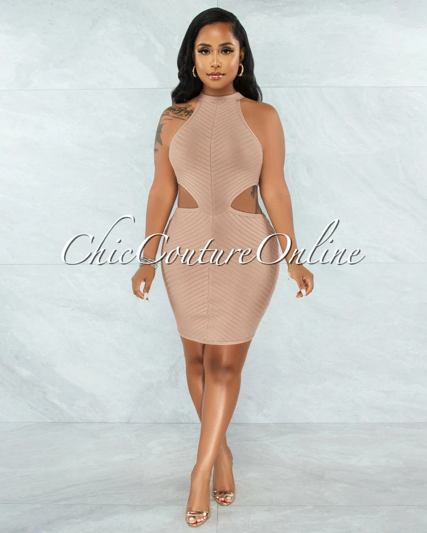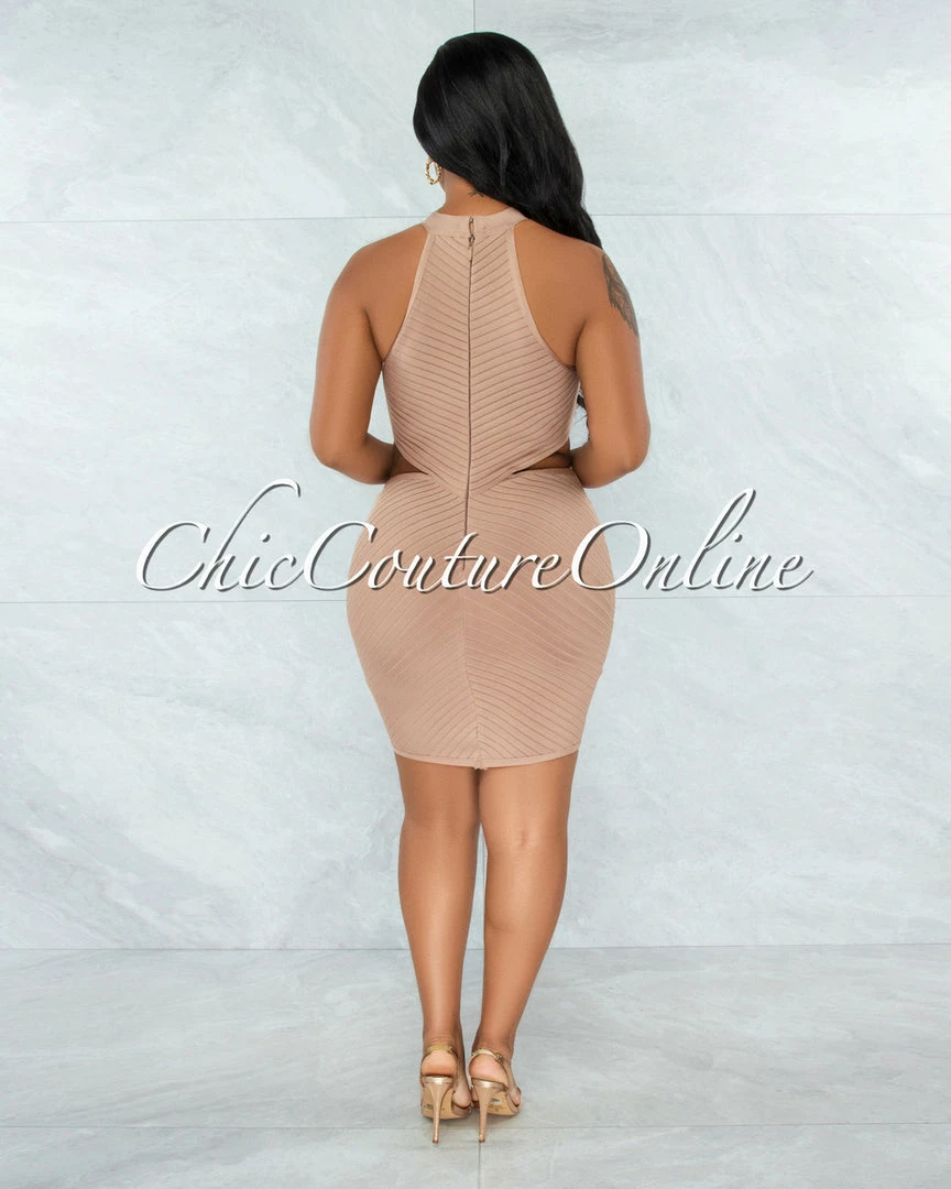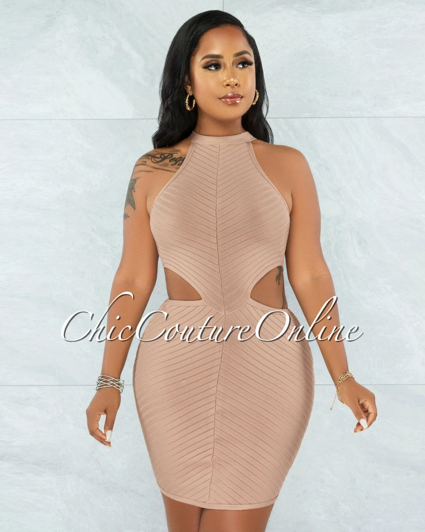 Vendor-unknown Devland Nude Ribbed Racer Cut-Out Waist Bandage Dress JUST IN