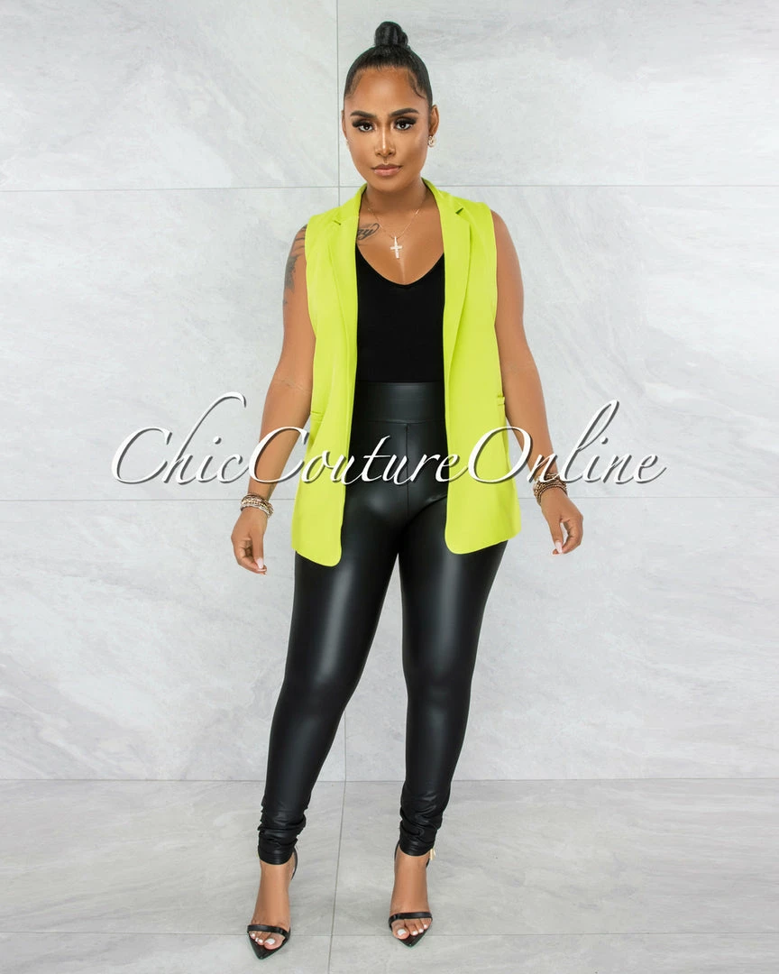Vendor-unknown Esteban Lime Green Collared Self-Tie Belt Vest JUST IN
