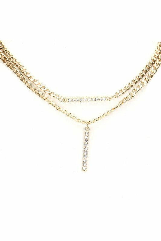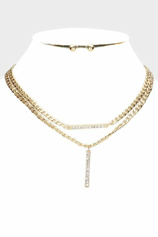 Vendor-unknown Francis Gold Stone Embellished Bar Pendant Accented Necklace