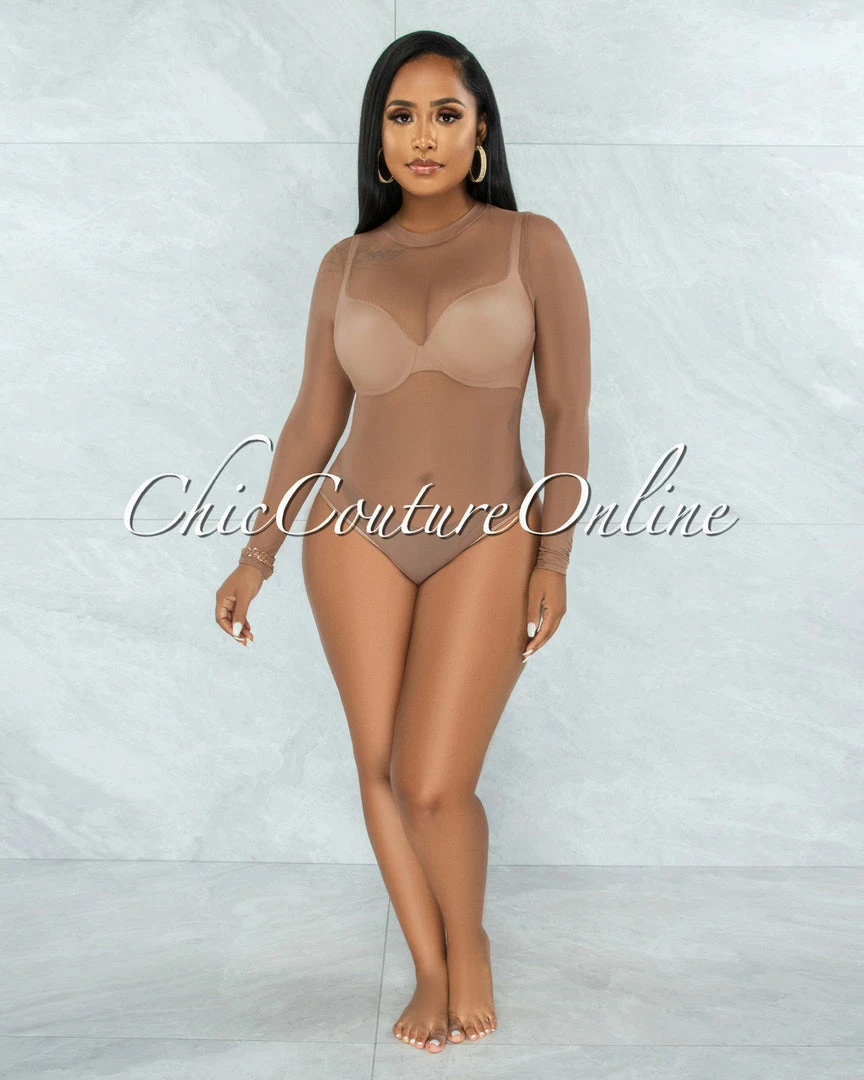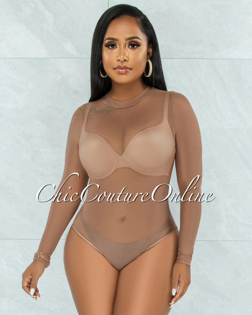 Vendor-unknown Granada Mocha Mesh Sheer Bodysuit