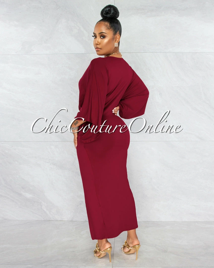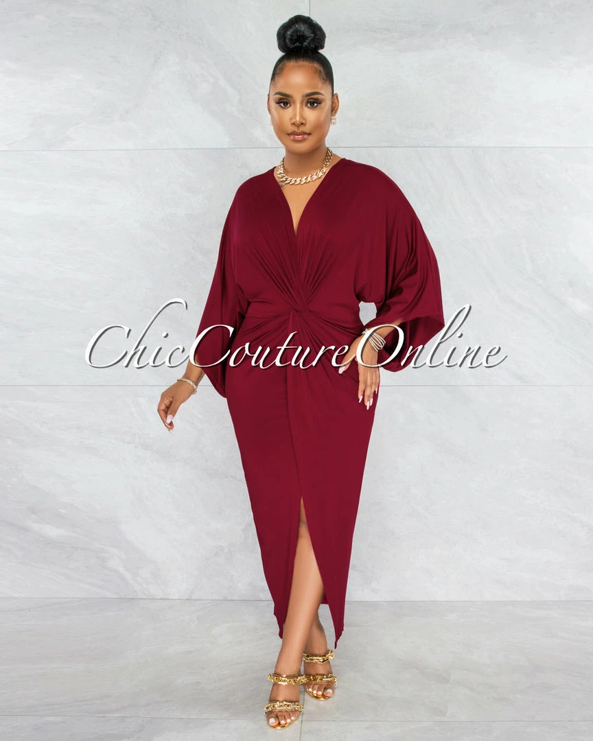 Vendor-unknown Harod Burgundy Knotted Front Midi Dress JUST IN