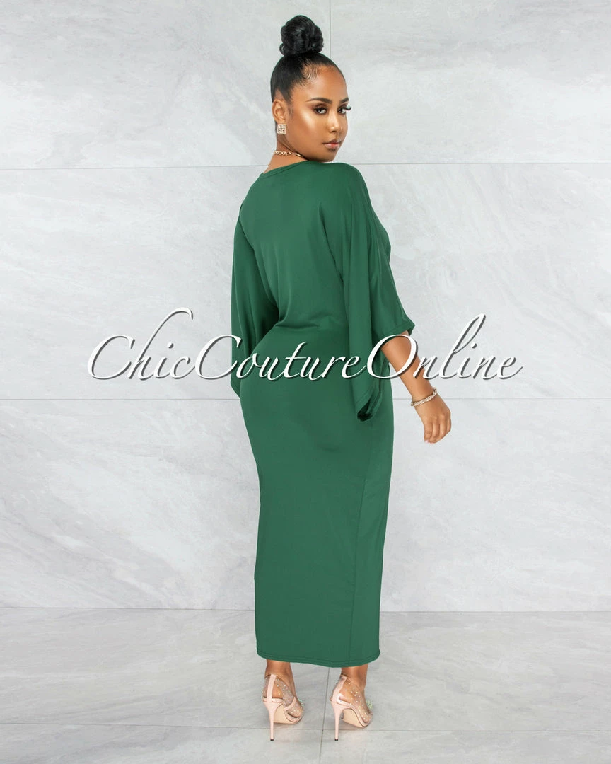 Featuring a V neckline, knotted front detailing, and full-length maxi with front slit, the gorgeous cut and design of this silhouette makes this dress a true stunner all on its own.