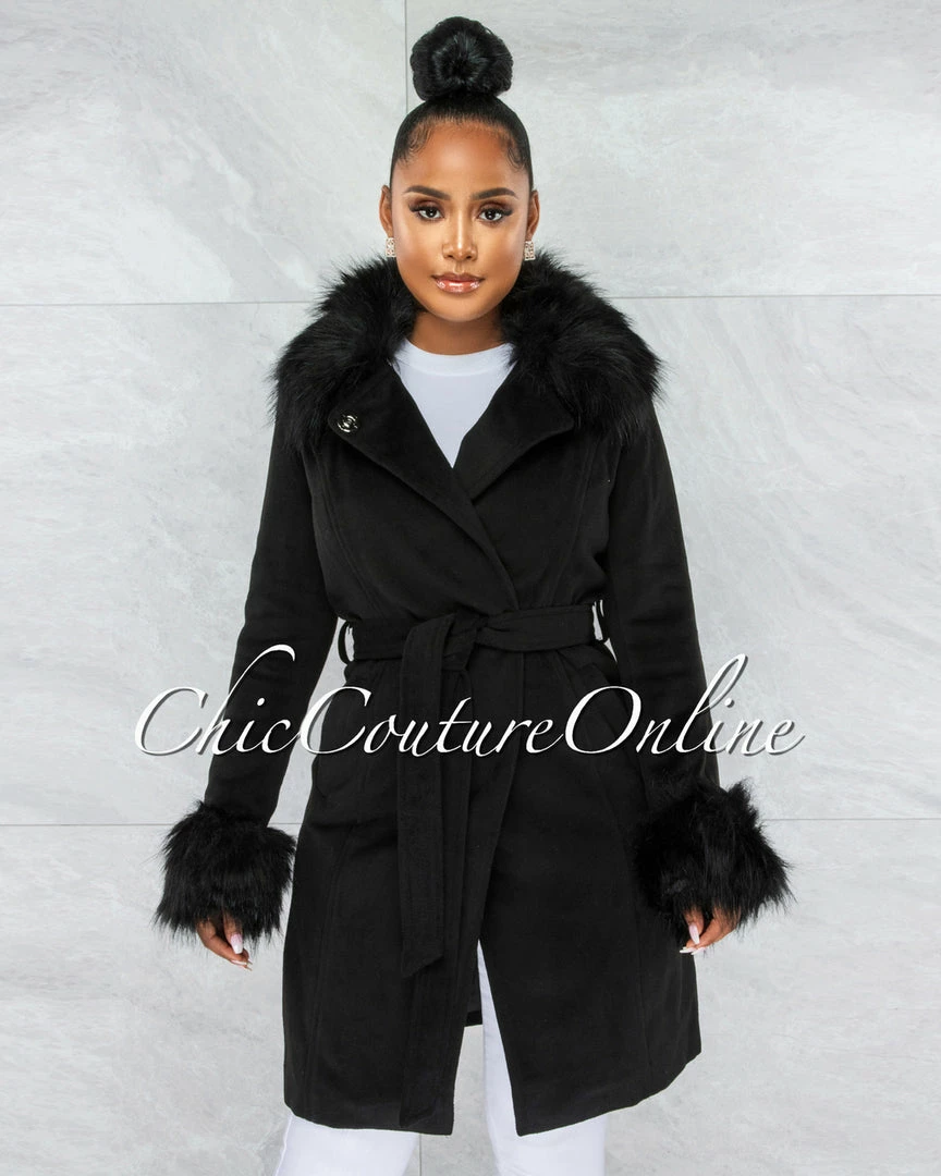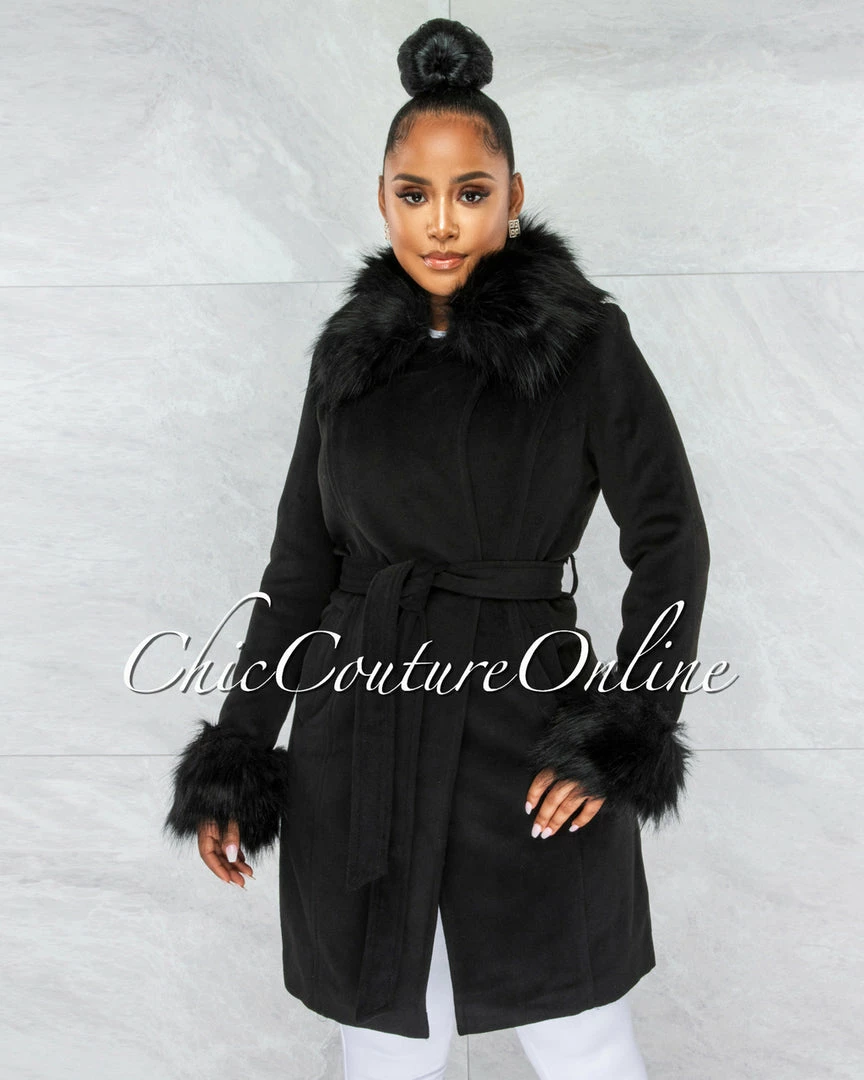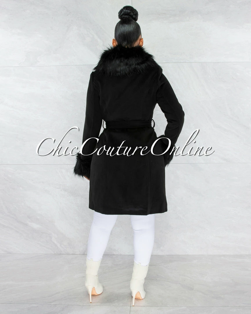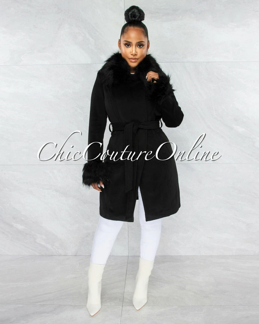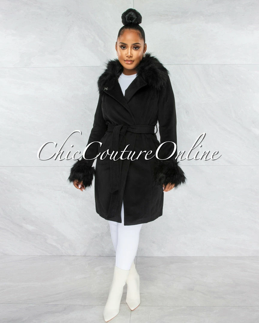 Vendor-unknown Holland Black Faux Fur Belted Coat