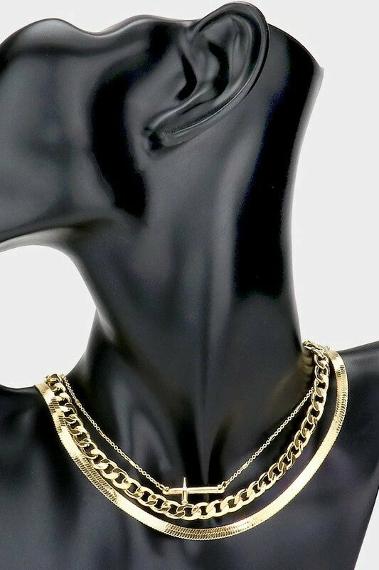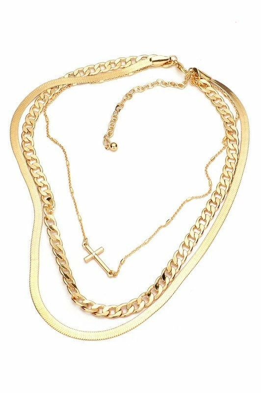 Vendor-unknown JUST IN Deena Gold Cross Pendant Triple Necklace