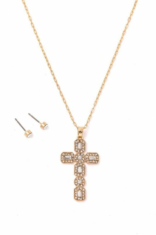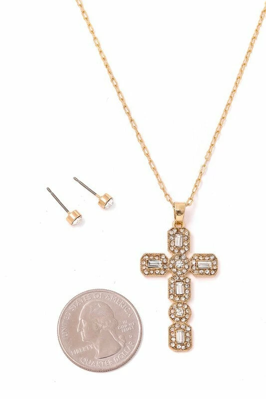 Vendor-unknown JUST IN Lauren Gold Square Rhinestone Cross Pendant Necklace