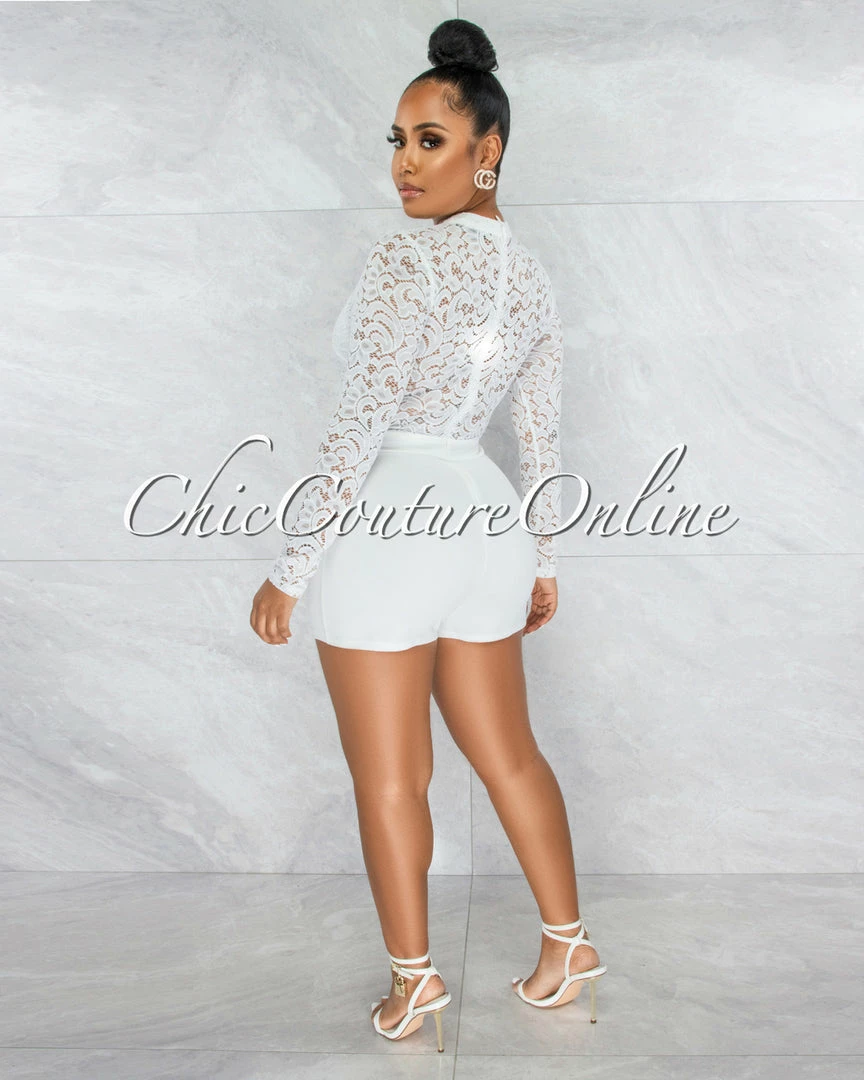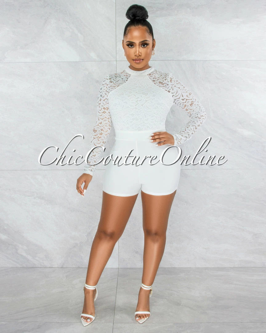 We deliver a one-and-done romper for after dark, sure to turn heads with a sultry lace bodice.