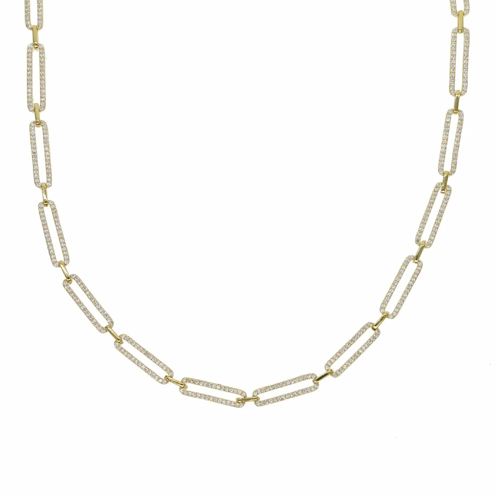 Listing is for ONE necklace ONLYVendor-unknown JUST IN Maybel Gold Bling Micro Pave Cz Rectangle Open Link Chain Choker Necklace