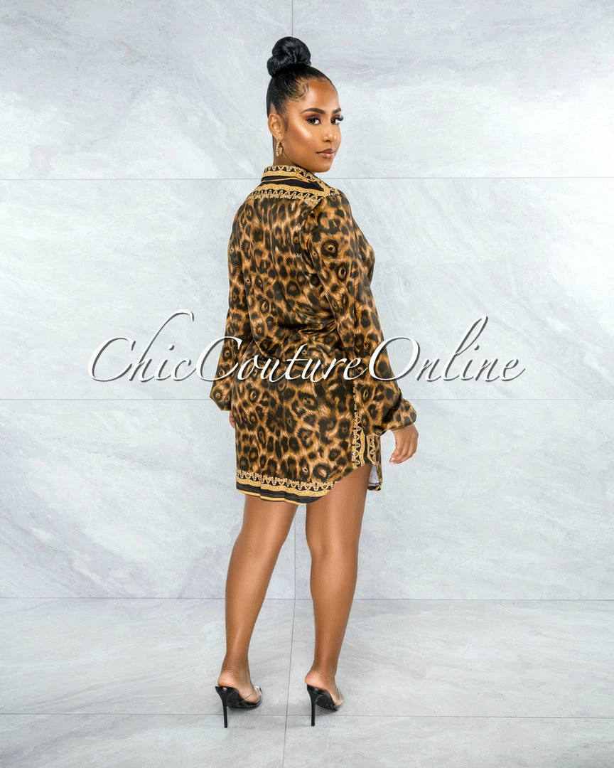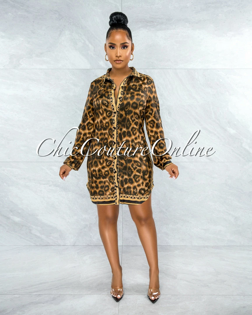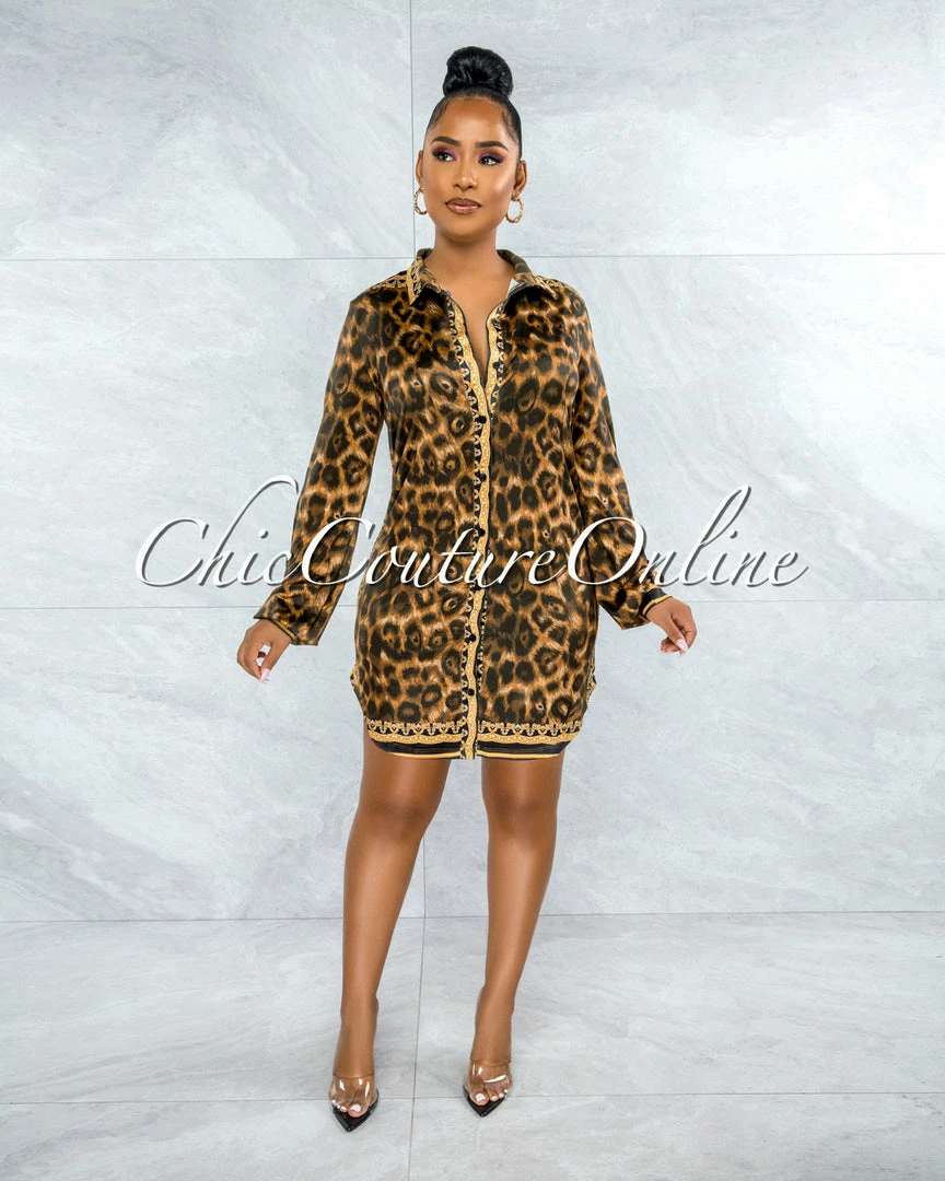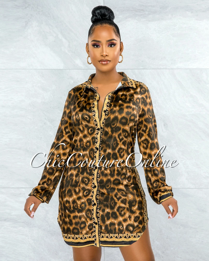 Easy, breezy and fluid define this effortless and slimming shirt dress. The beautiful print allow this design to be worn uptown, downtown or simply, all around town.