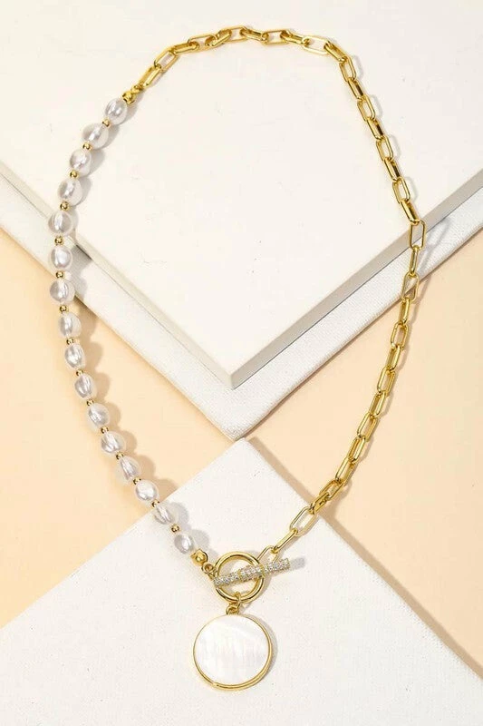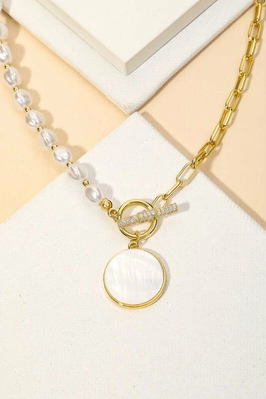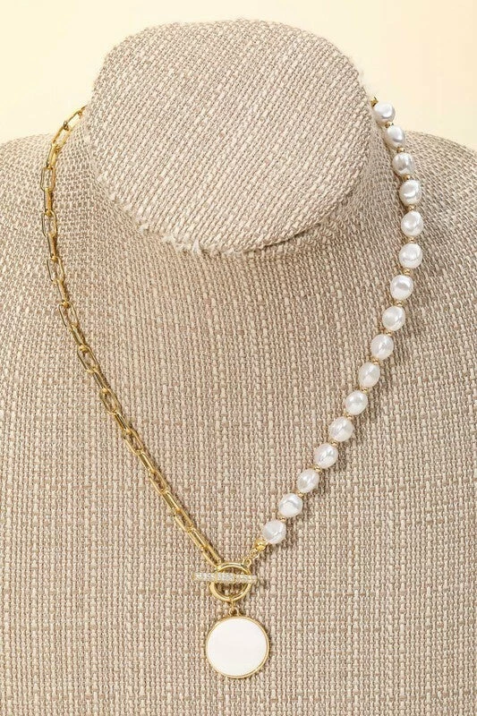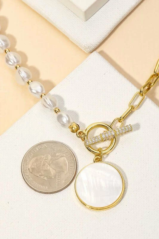 Vendor-unknown JUST IN Siobhan Pearl Bead Chain Link Disc Charm Necklace