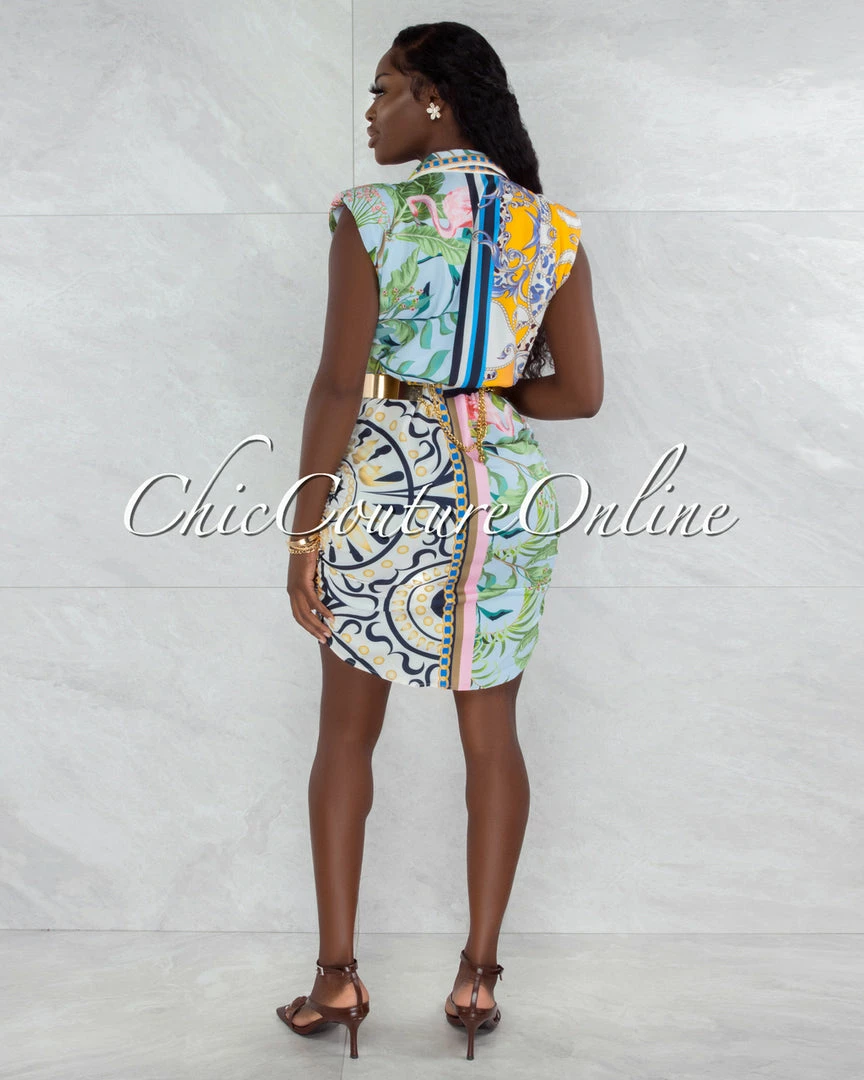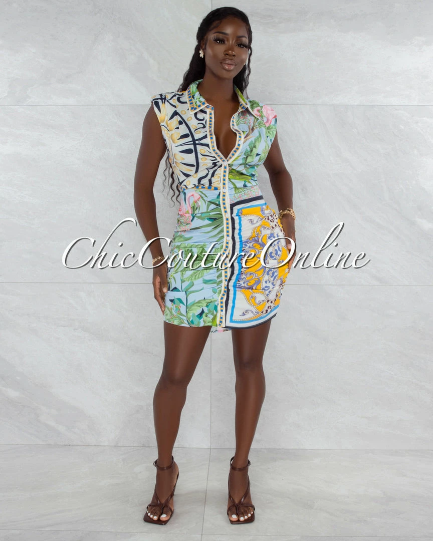 Easy, breezy and fluid define this effortless and slimming shirt dress. The beautiful print allow this design to be worn uptown, downtown or simply, all around town.