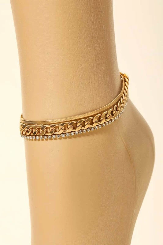 Vendor-unknown Karama Curb Chain Link Rhinestone Layered Anklet