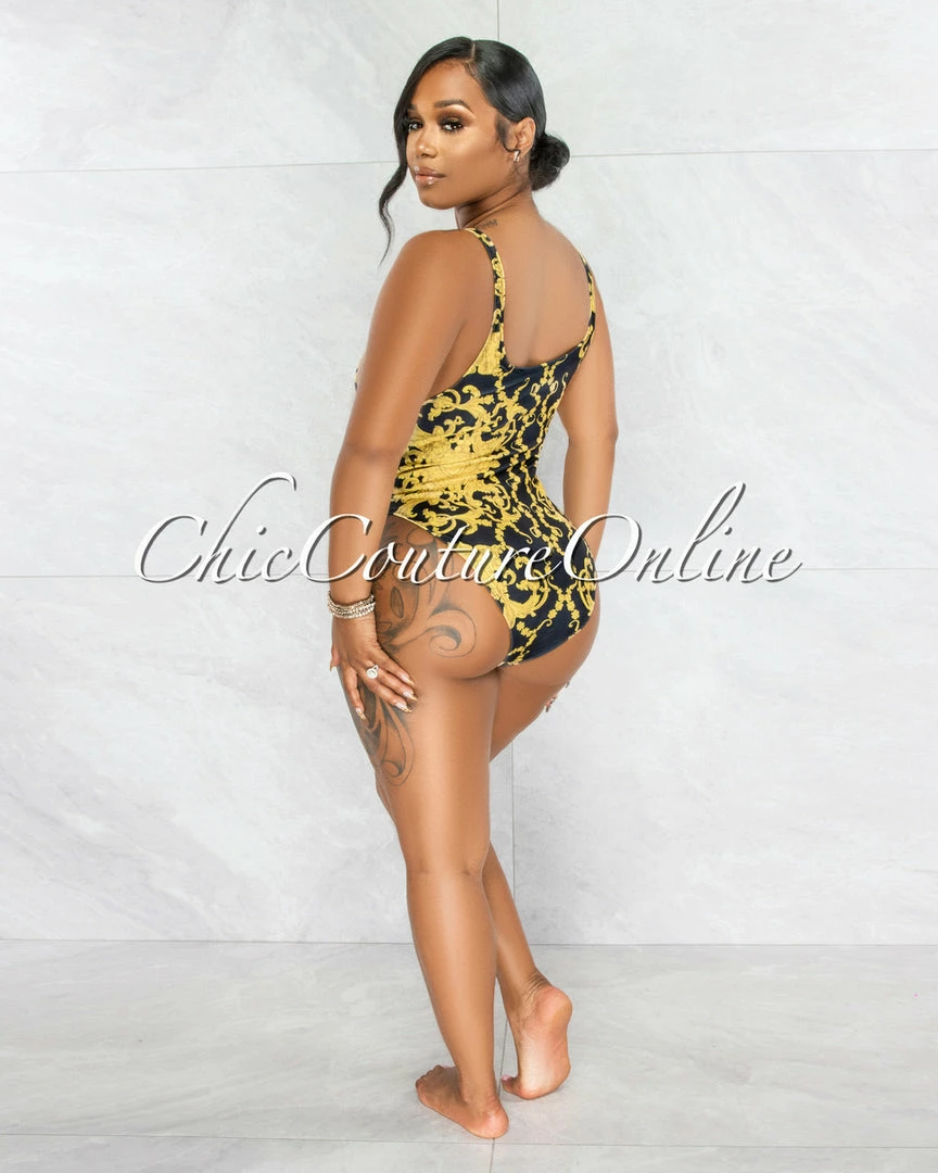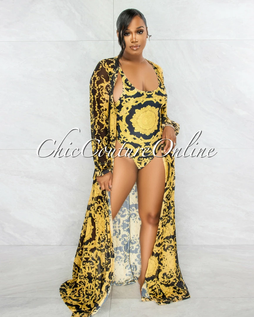 Add some prints to your look with this cover up set. Featuring a one piece matching swim for a look we are loving.