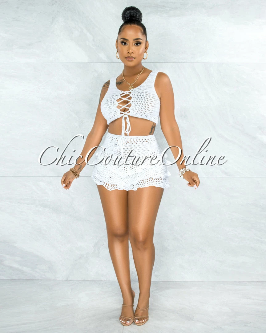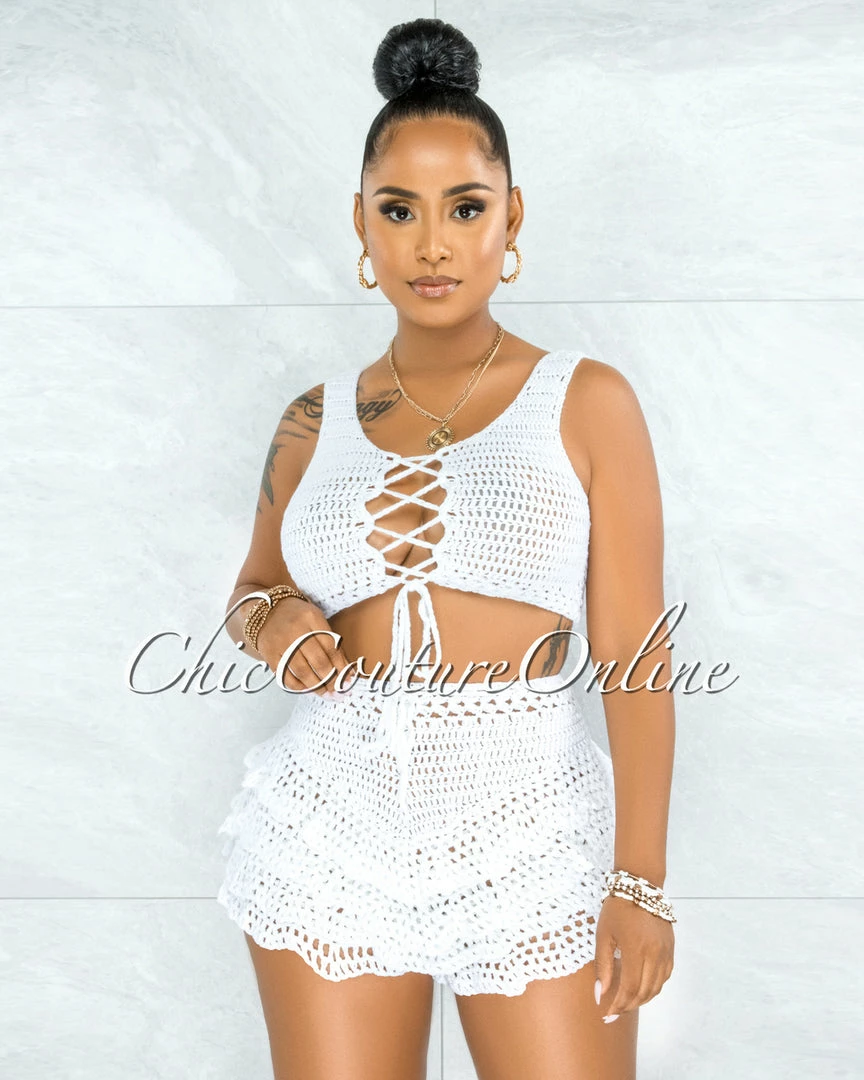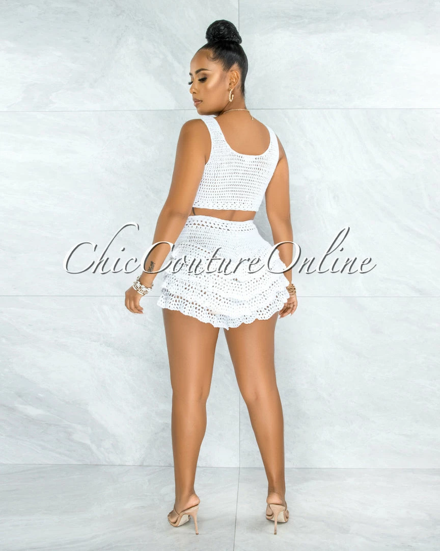 Vendor-unknown Leary Off White Crochet Cover-Up Ruffle Skort Set