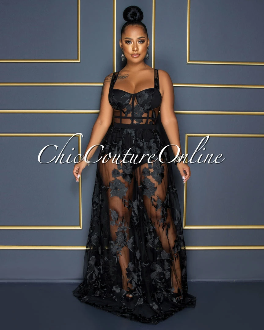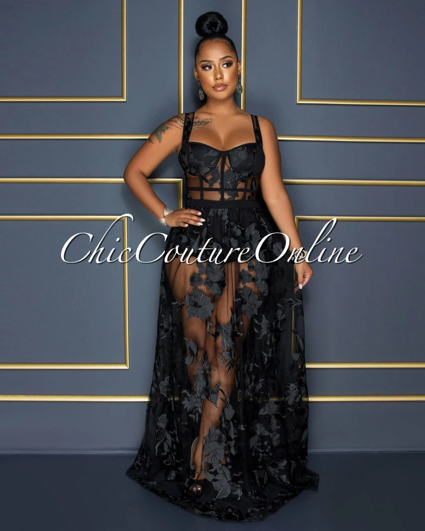 Embrace graceful on-trend style with this floral embroidery maxi dress.