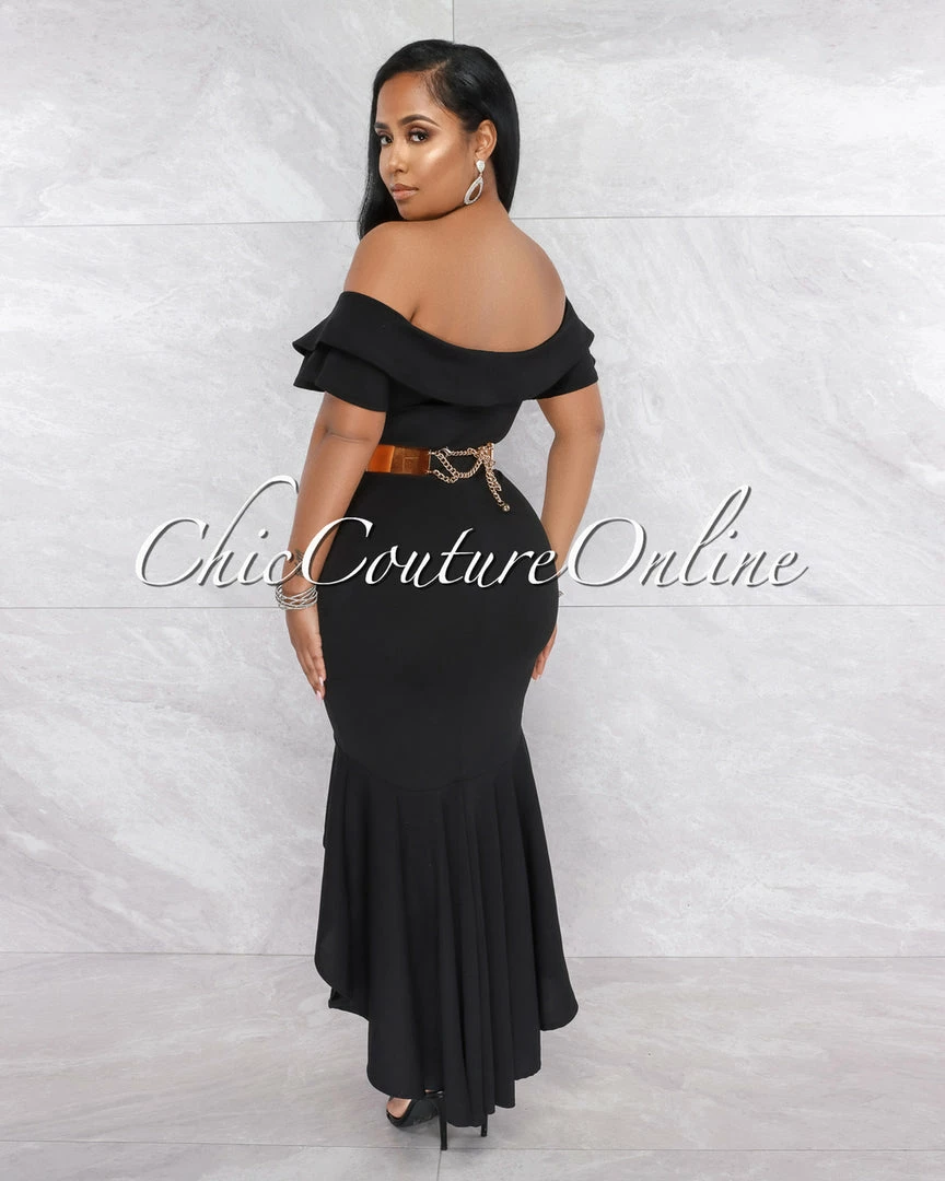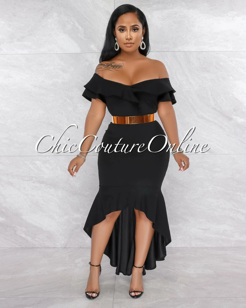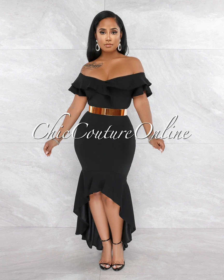 Vendor-unknown Macaria Black Ruffle Neckline Hi-Lo Dress JUST IN