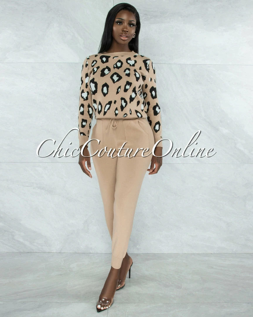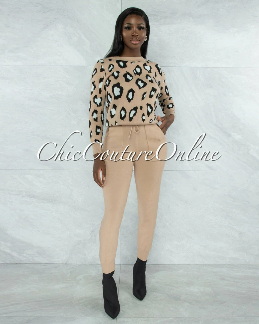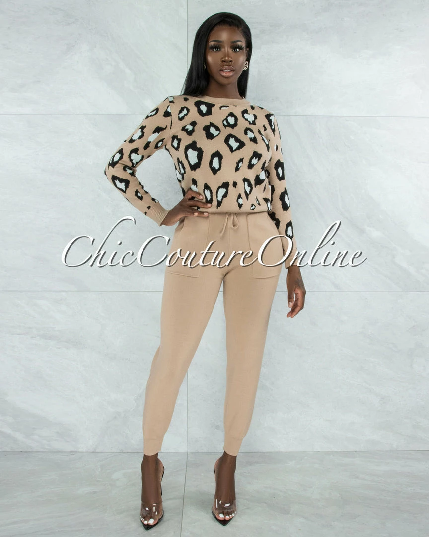 Vendor-unknown Mahalia Nude Black Leopard Sweater & Joggers Knit Set CLOTHING