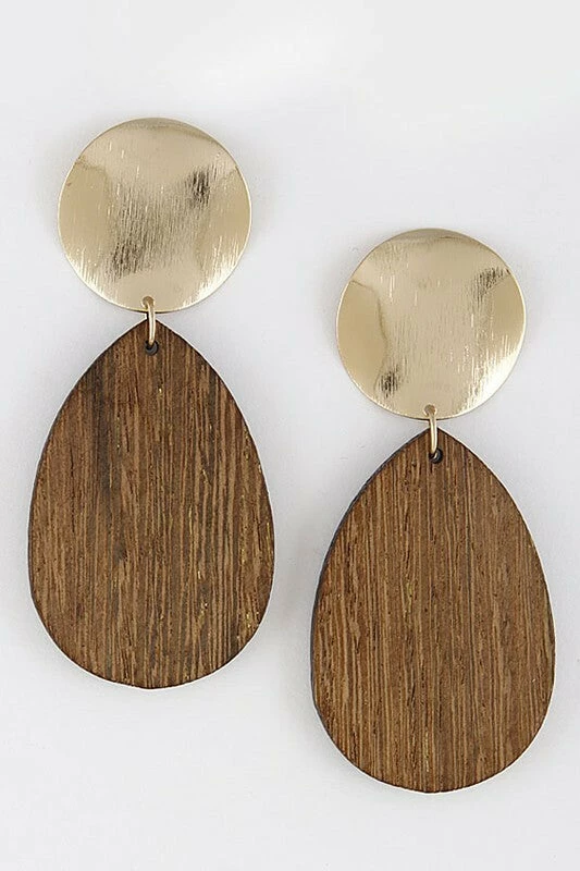 Vendor-unknown Marianne Golden & Faux Wood Mixed Media Dangle Earrings