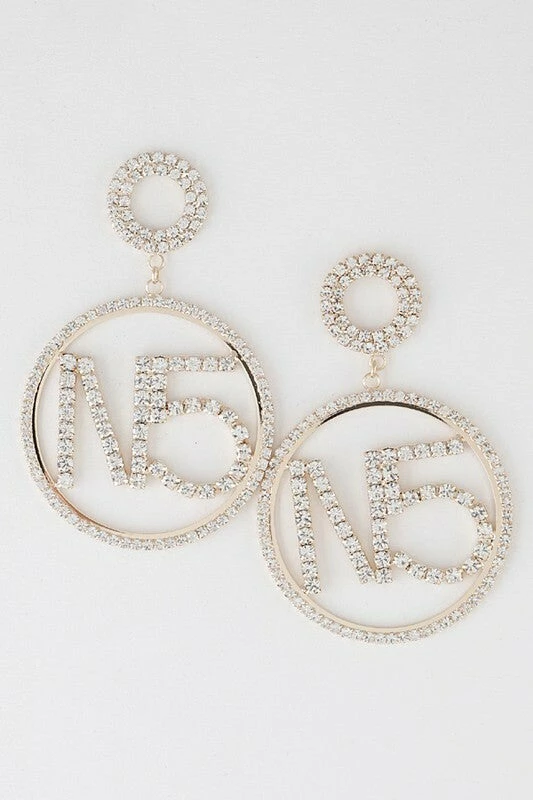 Size: 3.2 x 2.1" Approx Vendor-unknown No5 Gold Pavé Dangle Earrings