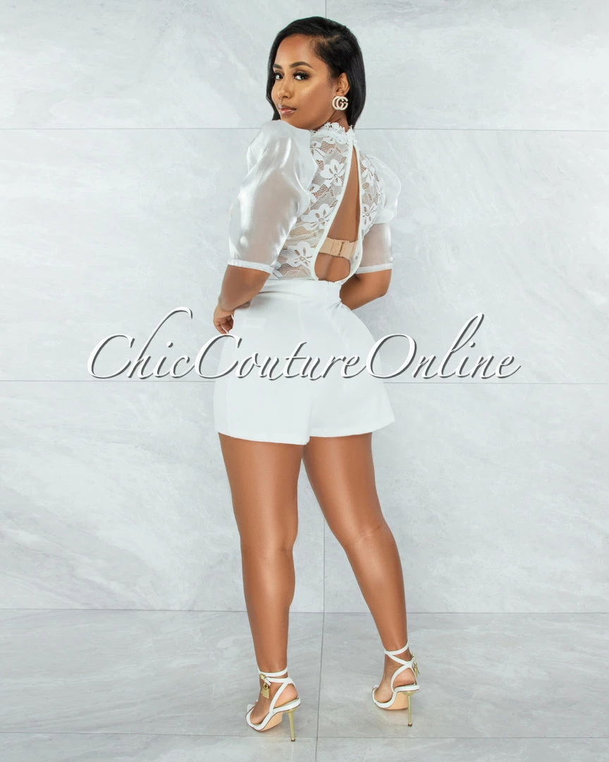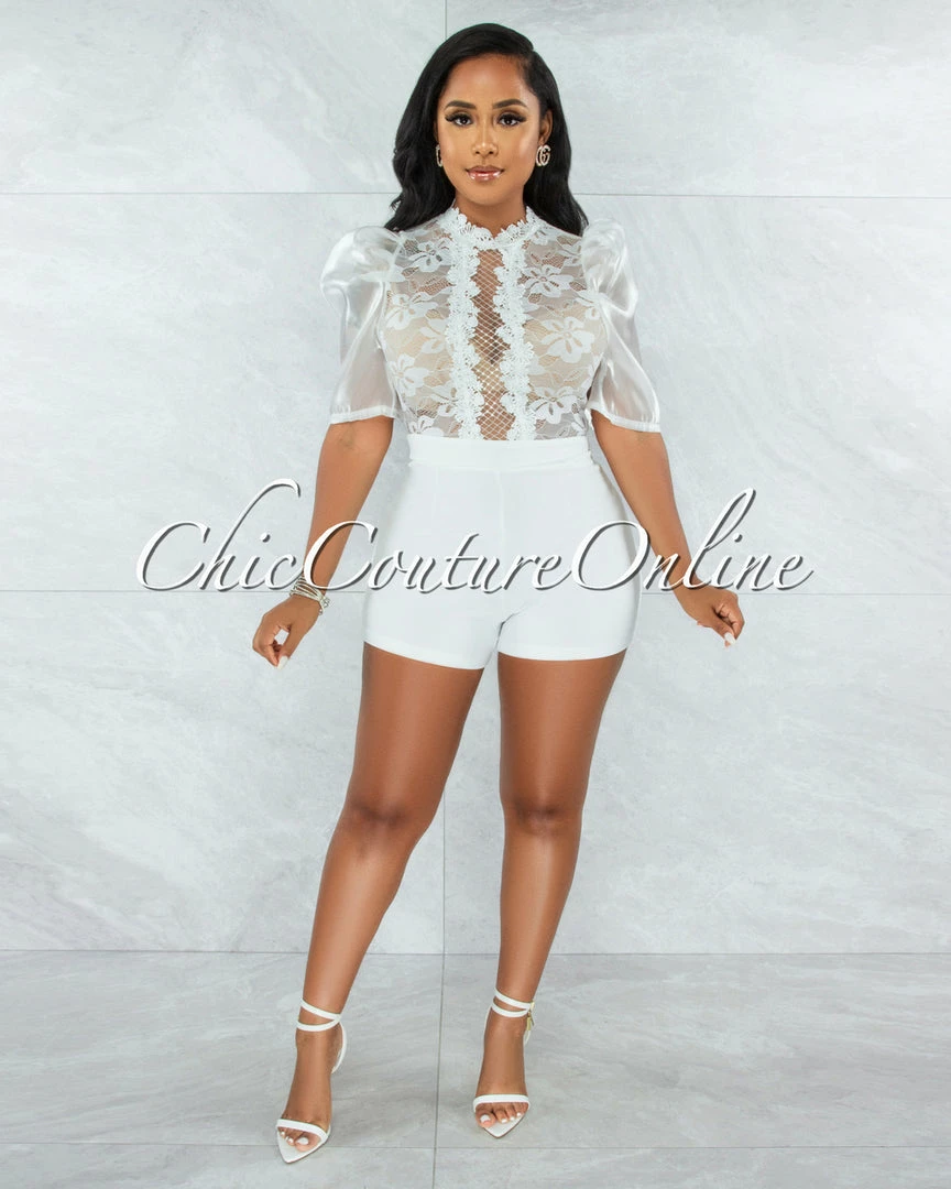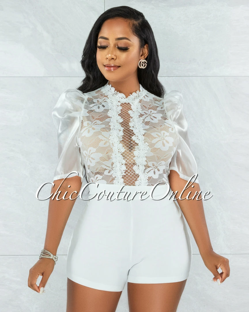 We deliver a one-and-done romper for after dark, sure to turn heads with a sultry lace bodice.