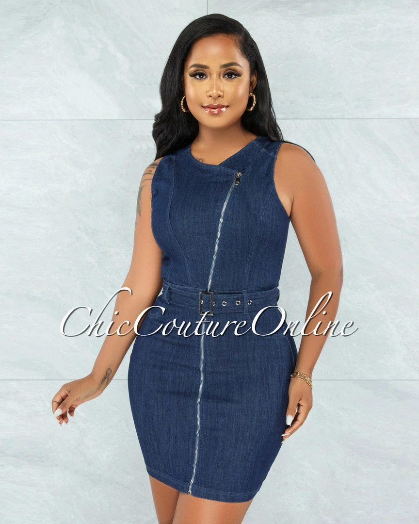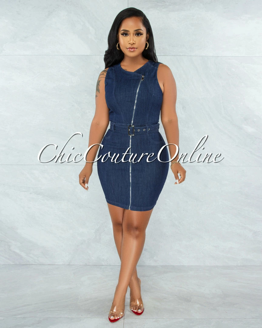 Update your occasion wardrobe with this flattering body-con dress. The denim construction forms to your curves and the zipper front design gives it a modern, on-trend look.
