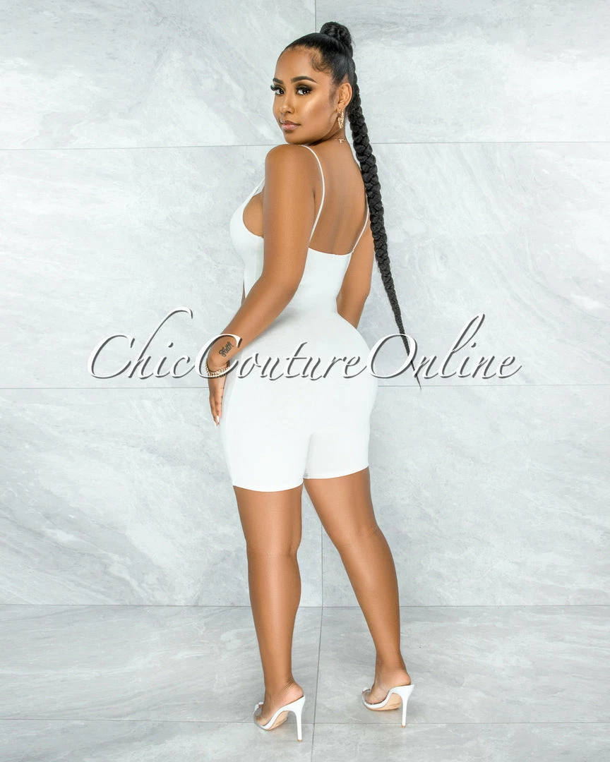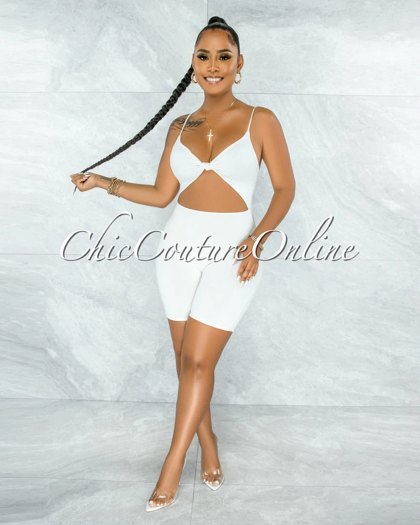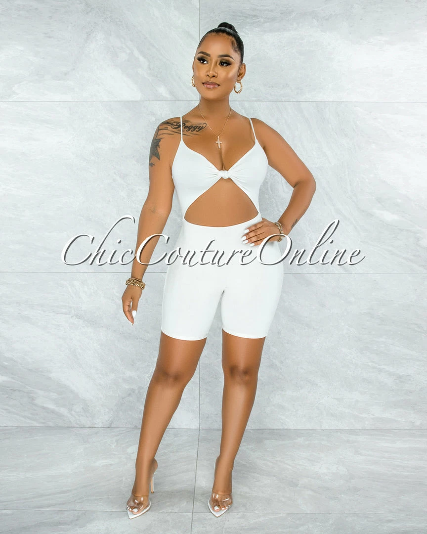 Vendor-unknown Richie Off-White Front Knot Cut-Out Double Lined Romper