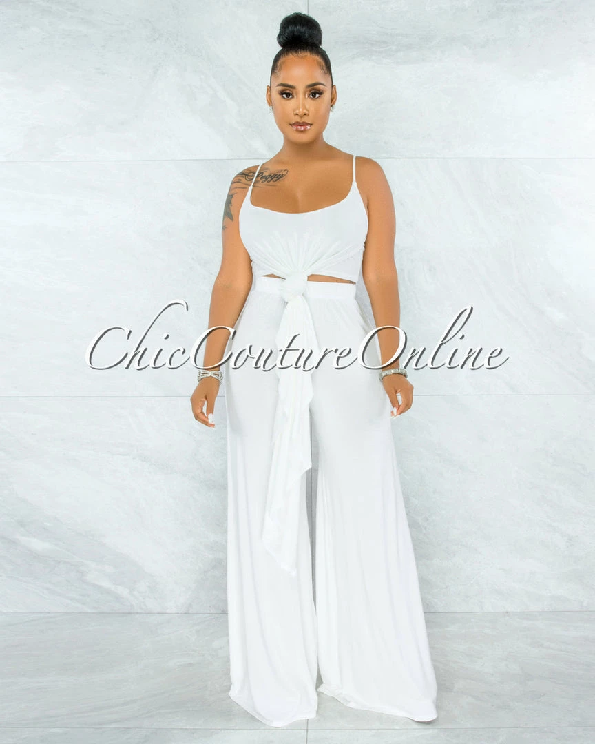 Give an ode to the sixties and seventies with a wide leg and front tie top!