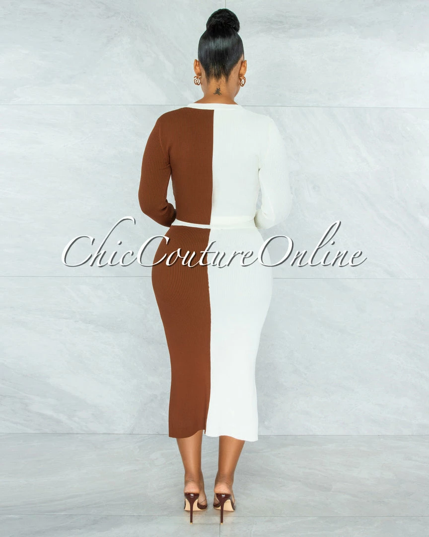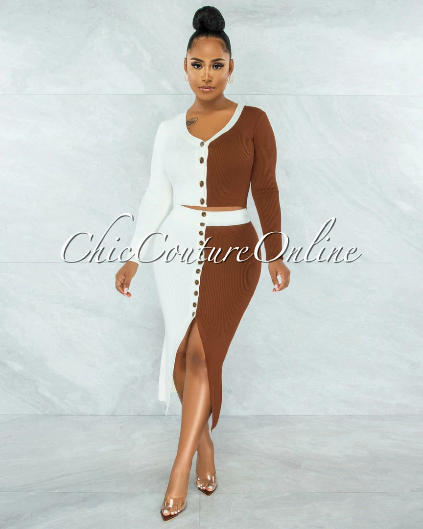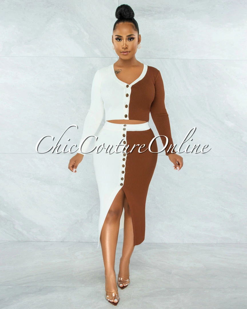 Featuring a buttoned crop top and buttons embellished pencil skirt, this set is one party-ready standout.