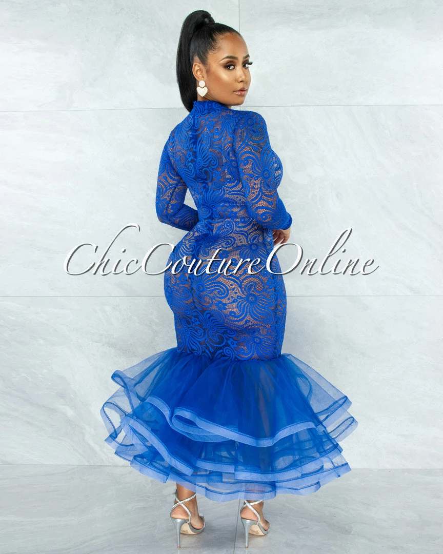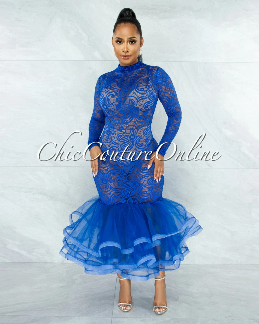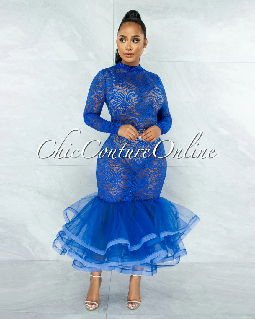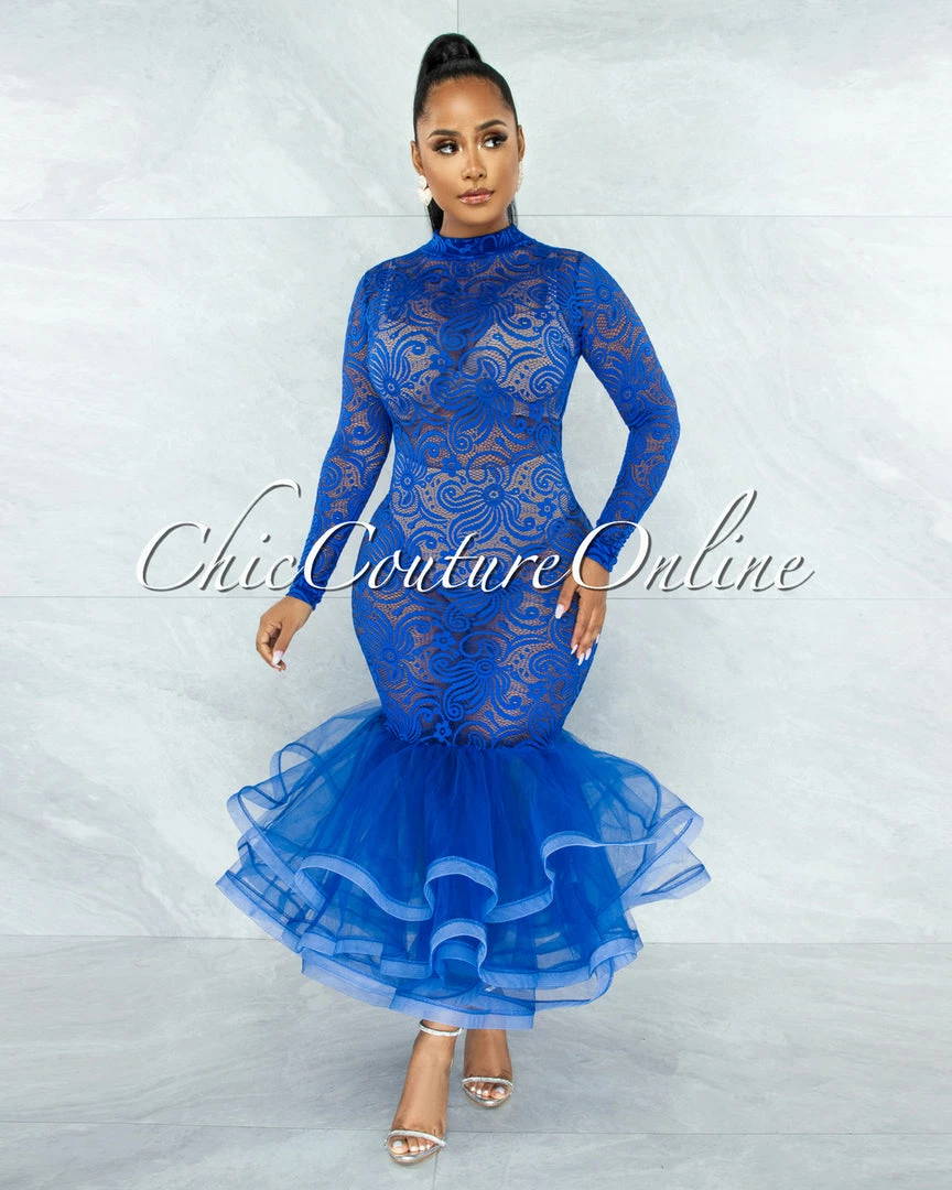 Make a grand entrance at your next event with this stunner. A lace bodice and finished with a mermaid skirt.